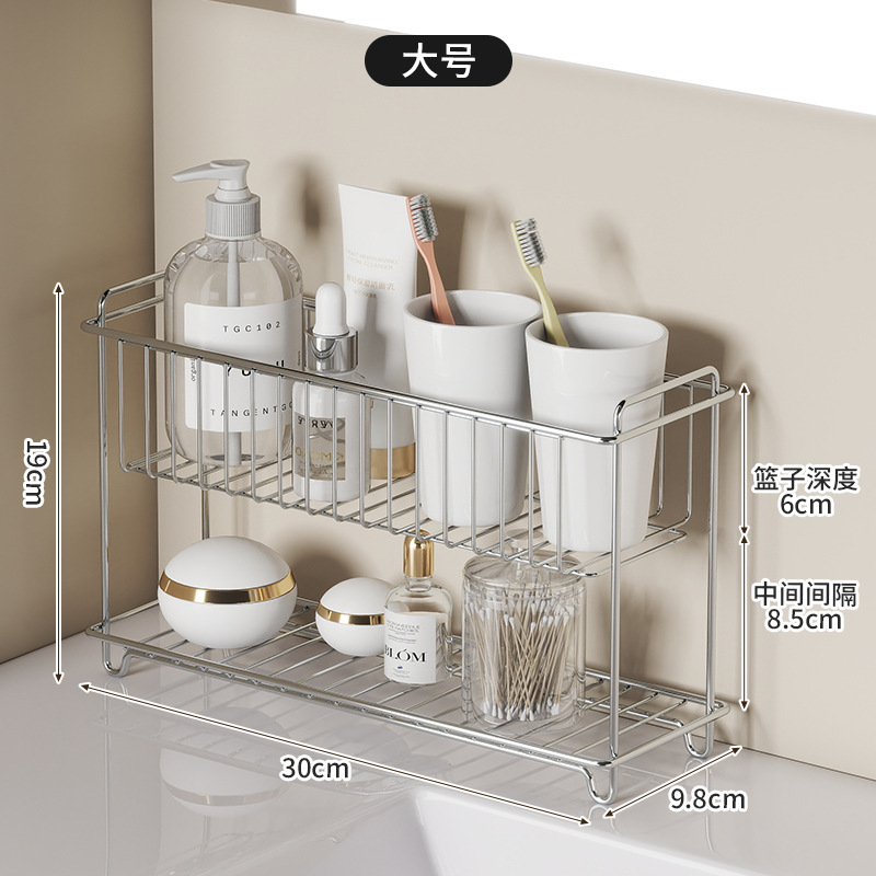 국경 간 스테인레스 스틸 보관 랙 주방 더블 레이어 조미료 보관 랙 워터 컵 랙 바구니 욕실 조리대 배수 랙