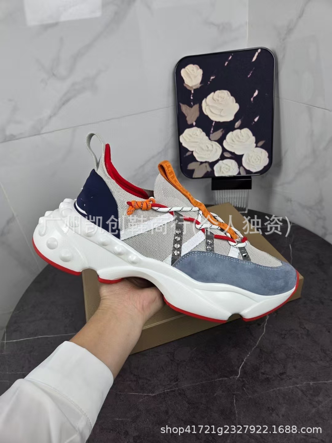 2025 대외 무역 새로운 스타일 컬러 블록 두꺼운 밑창 소가죽 버드나무 컬러 블록 아빠 신발 여성 유행 신발 아빠 신발 남성 신발