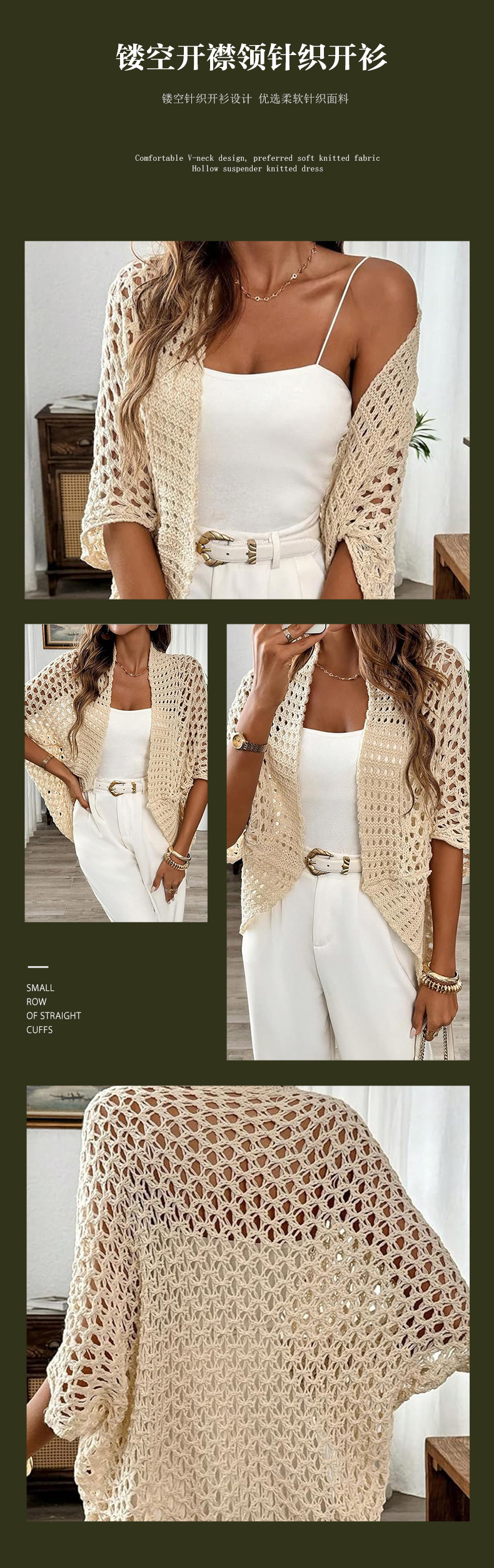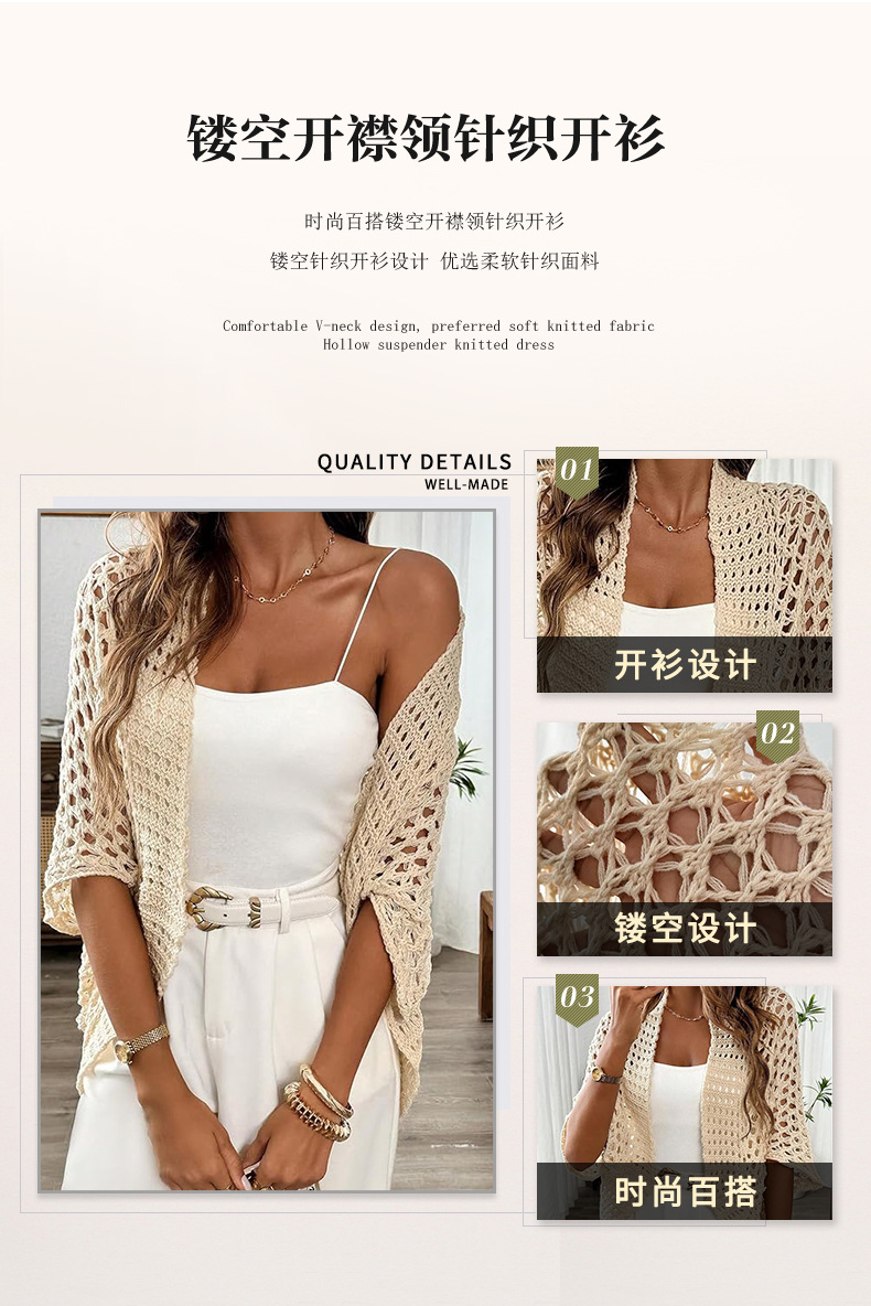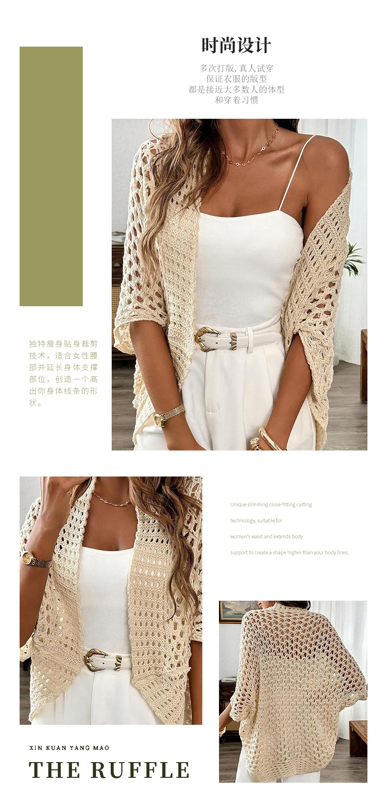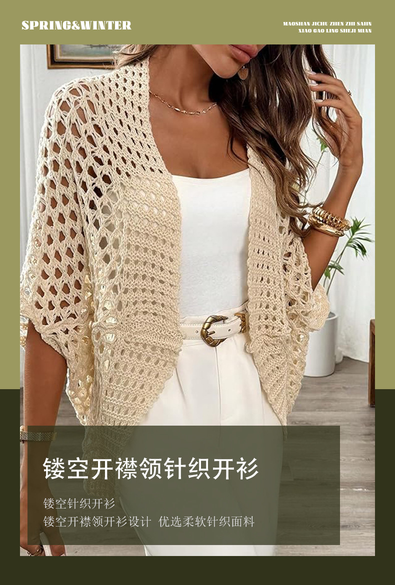 국경 간 유럽과 미국 의류 스웨터 숄 재킷 중공 스웨터 느슨한 단색 반팔 짧은 탑