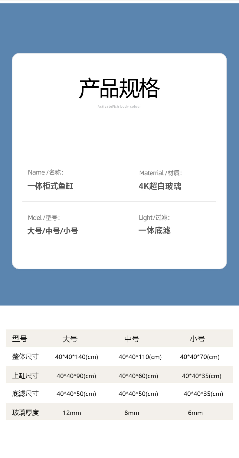 • 40*40*140 캐비닛 수조-기본 패키지 [투명 필터링]