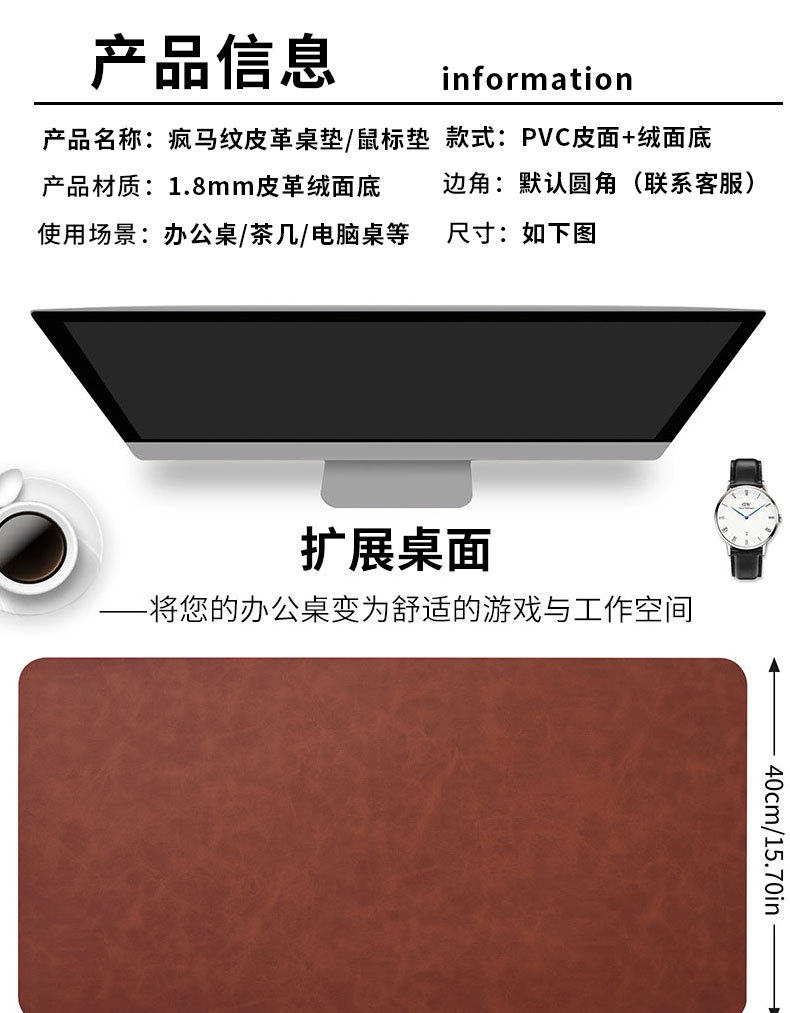 라이트 럭셔리 복고풍 질감 붉은 갈색 미친 말 패턴 초대형 마우스 패드 컴퓨터 책상 패드 테이블 패드 커피 테이블 패드