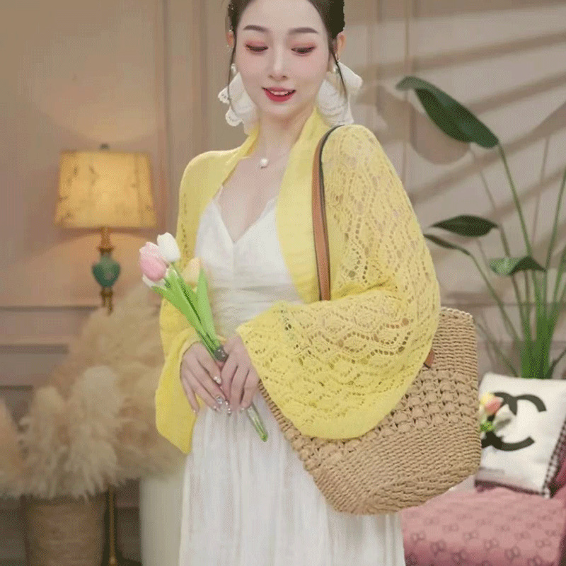 [여름 니트 중공 숄] 통기성이 좋고 패셔너블하며 다재다능하고 슬림한 에어컨 숄 얇은 양복 조끼 2025 새로운 스타일