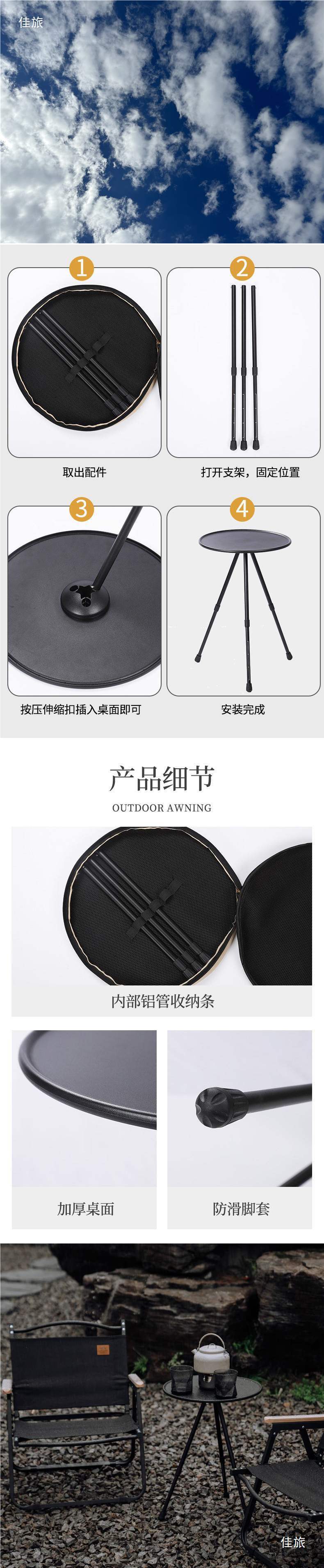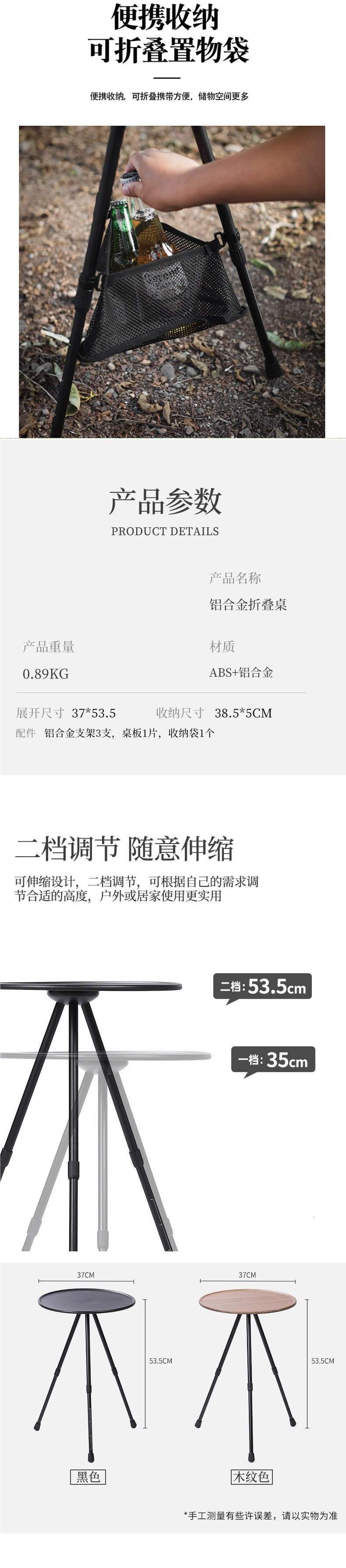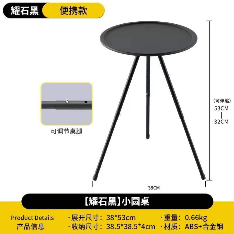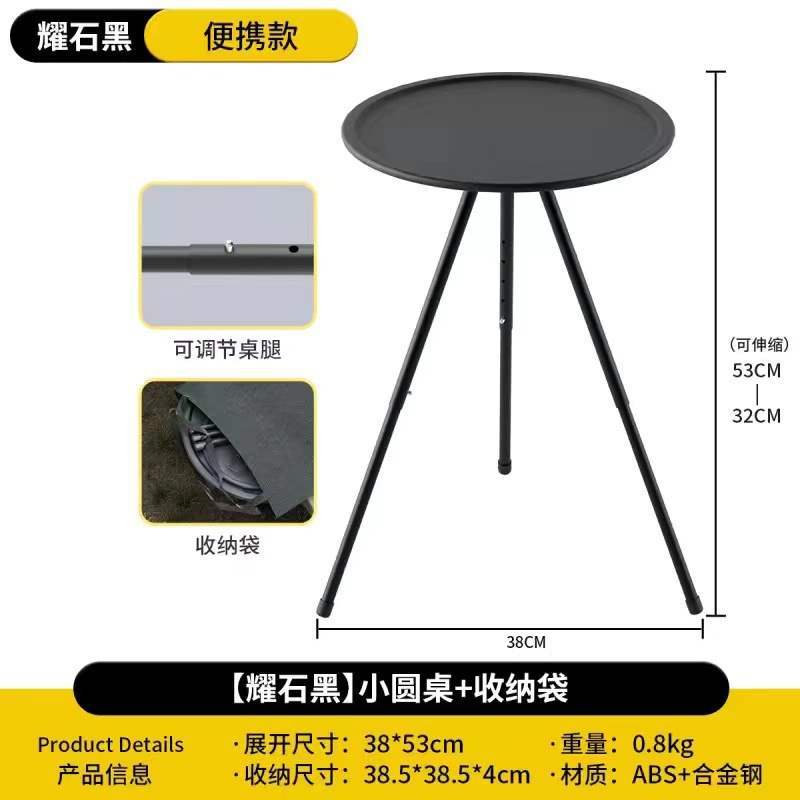 • 흑요석 검정색 소형 원형 테이블(수납 가방 포함)