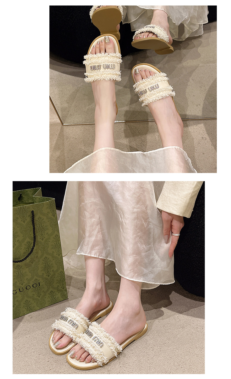 여성을위한 Xiaoxiangfeng 하이 엔드 슬리퍼 여름 겉옷 도매 새로운 여름 플랫 여성 비치 프랑스 스타일 작은 샌들스토어 가기