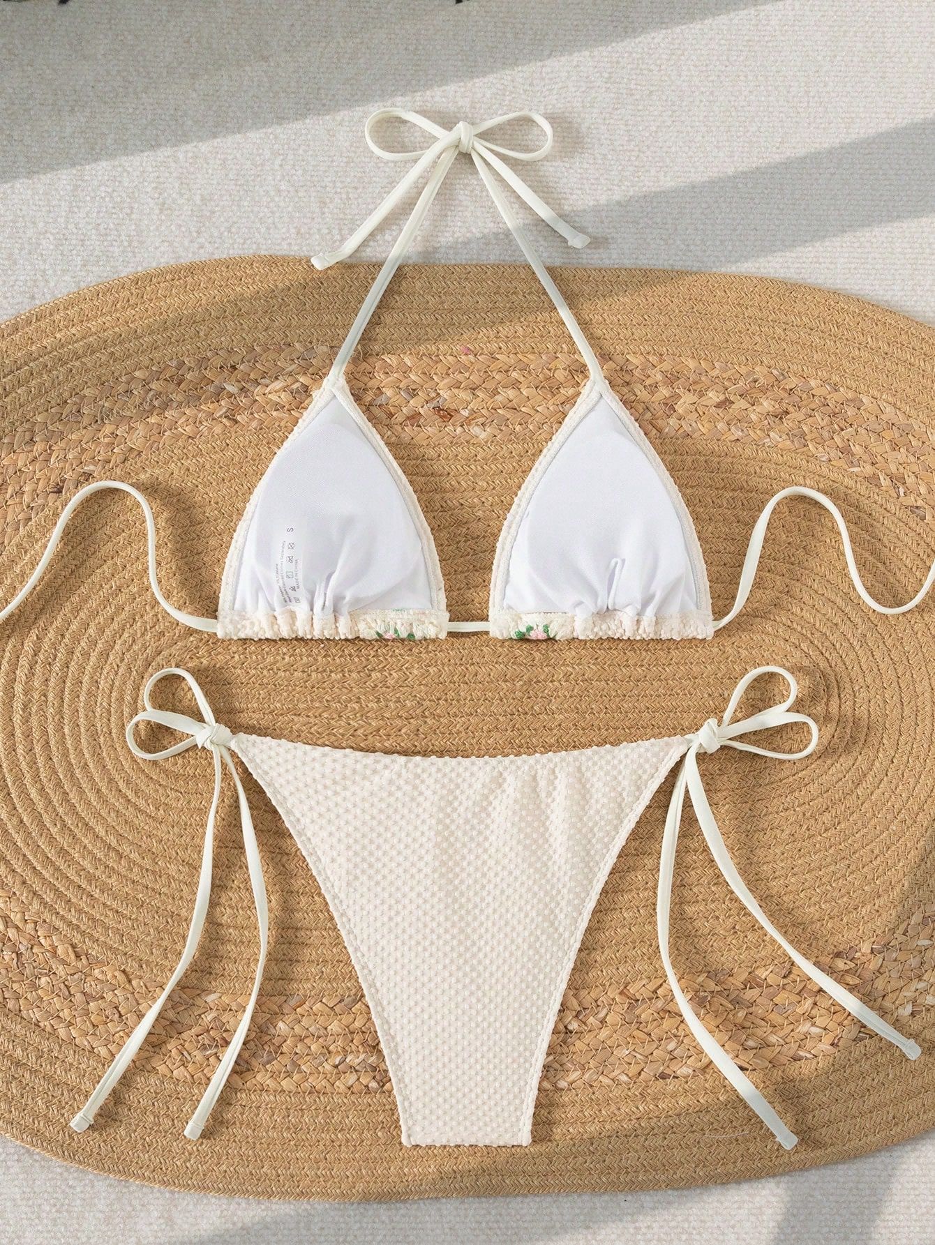 2025 스팟 유럽과 미국의 새로운 솔리드 컬러 핸드메이드 플라워 하이웨이스트 스플릿 수영복 여성 비키니 아마존 크로스보더 수영복스토어 가기