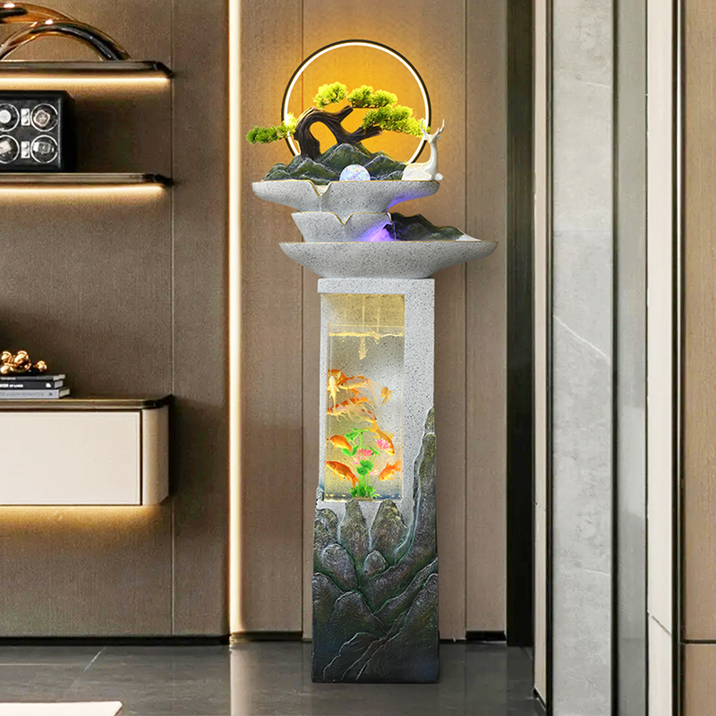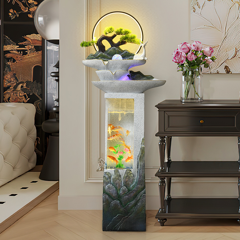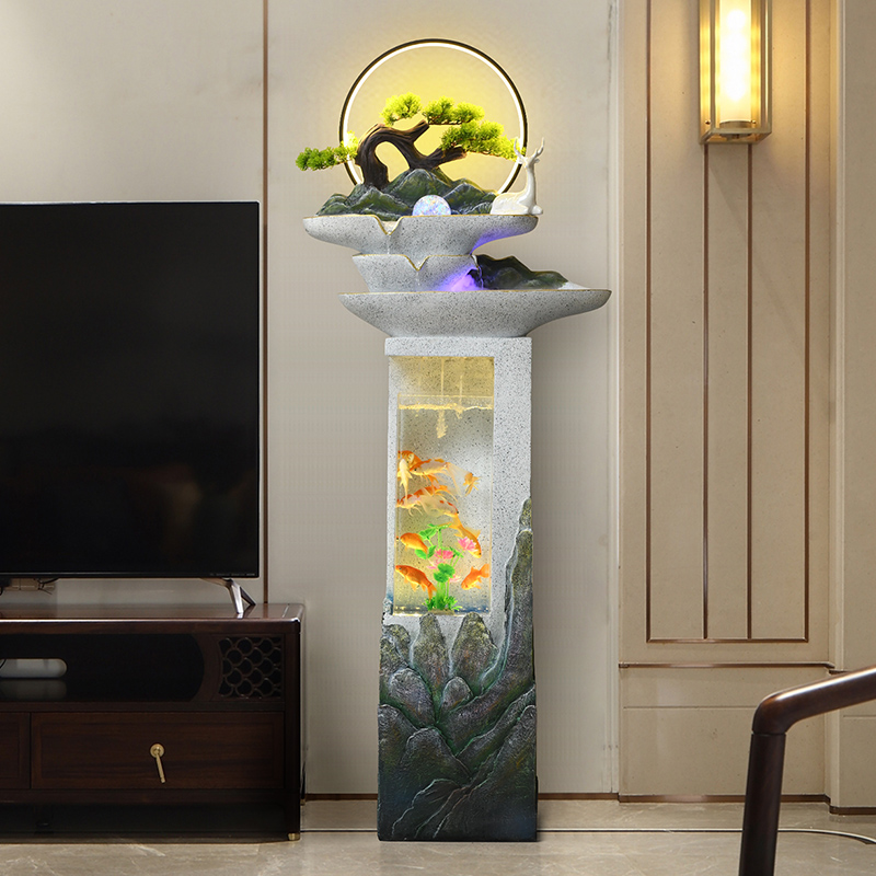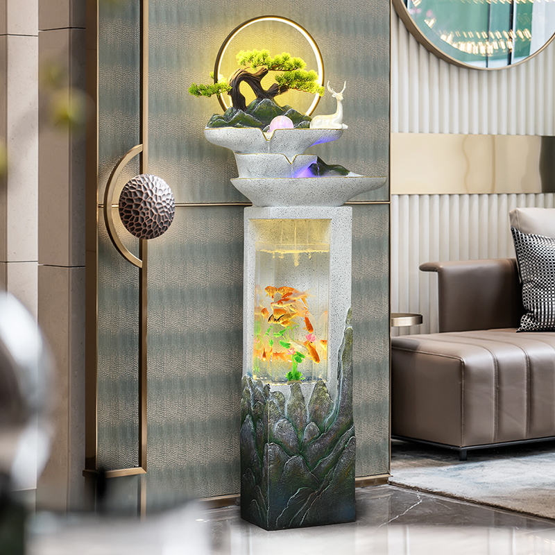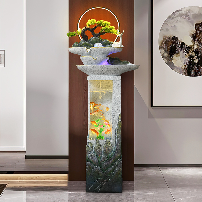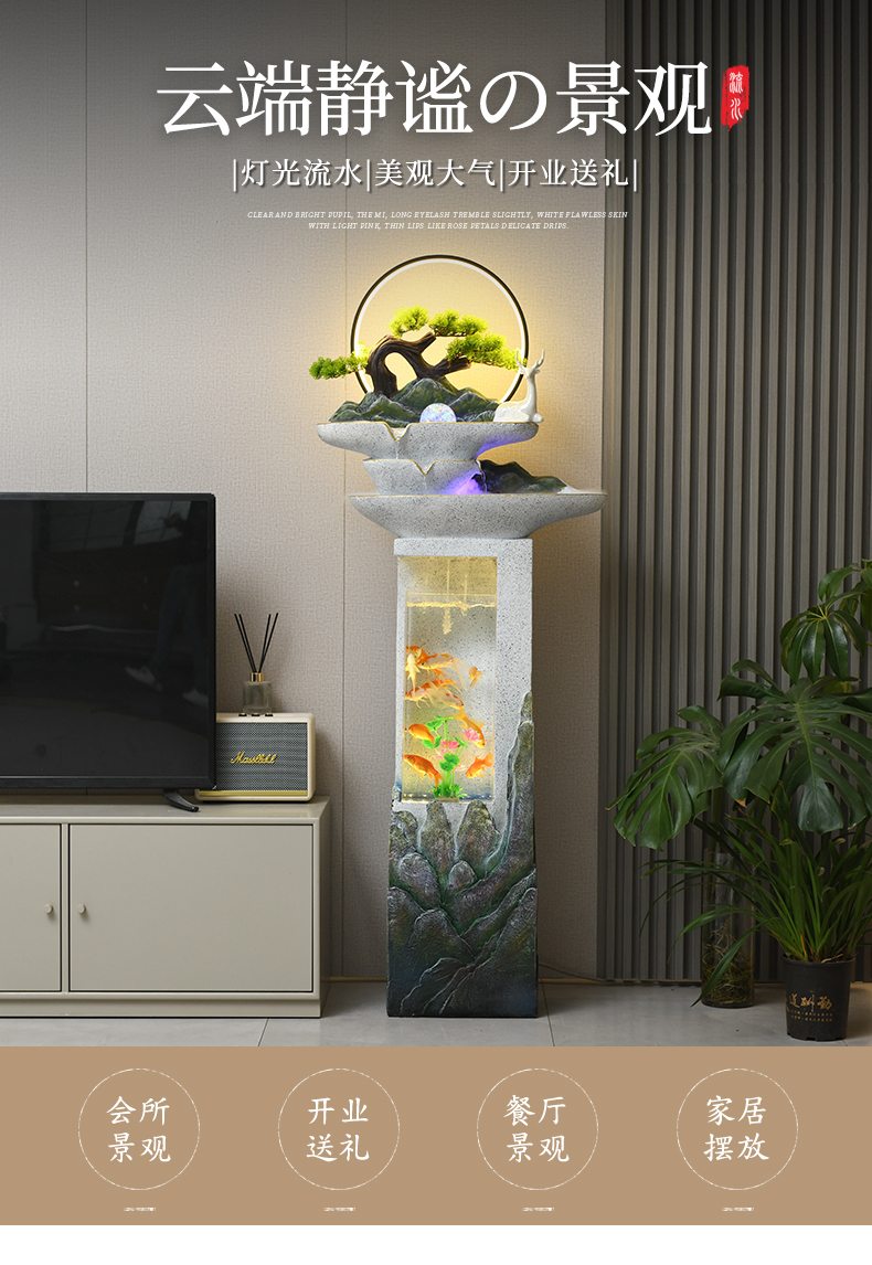 현대적인 가벼운 고급 바위 순환 물 생태 수조 행운 풍수 거실 입구 개방식 집들이 선물 장식품스토어 가기