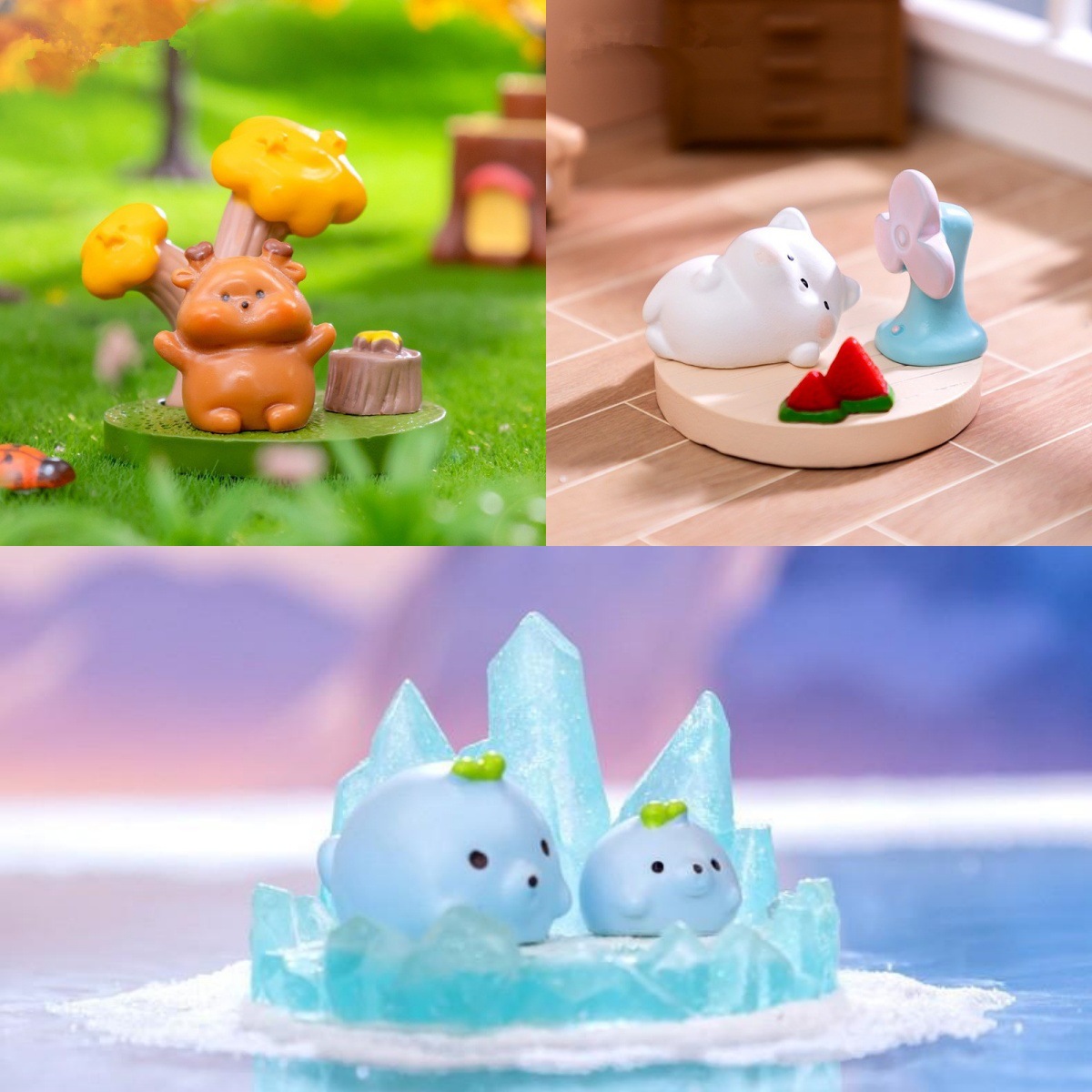 마이크로 풍경 장식품, 다육 장식 액세서리, 미니 귀여운 동물 3피스 세트, 블라인드 박스 핸드메이드 DIY 재료 패키지스토어 가기