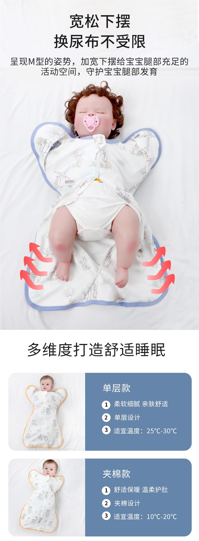 아기 항복 스타일 충격 방지 슬리핑 백 봄, 가을, 겨울 얇은 면 여름 통기성 순수 아기 포대기 안티 킥 이불 0-6-12 개월