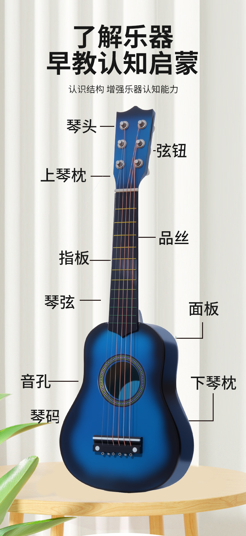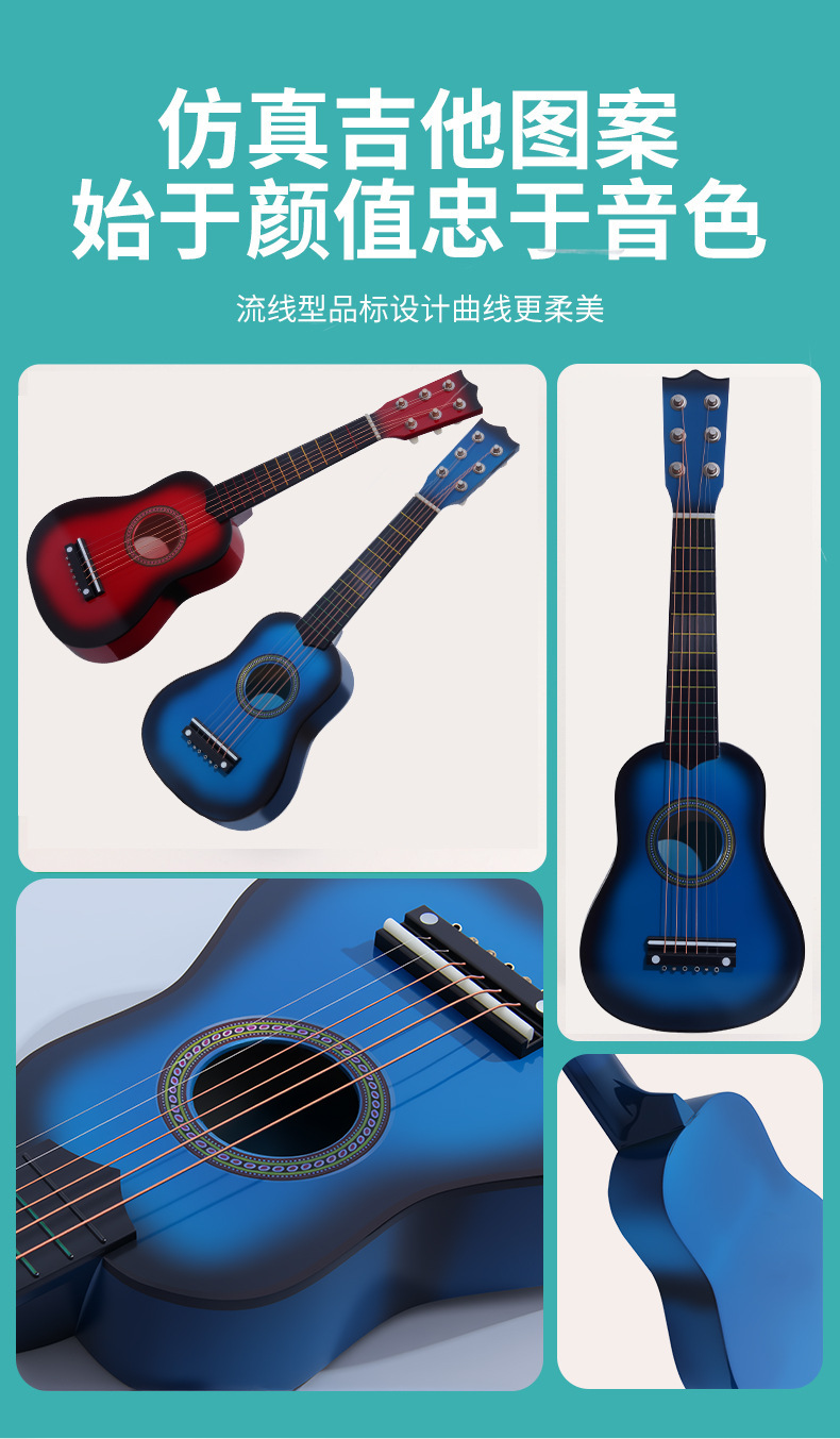 국경 간 도매 21inch 작은 기타 여러 가지 빛깔의 나무 기타 어린이 초보자 학습 기타 연주 6 현 작은 기타스토어 가기