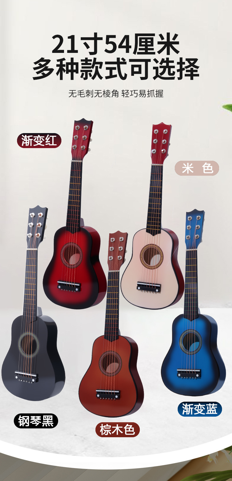 국경 간 도매 21inch 작은 기타 여러 가지 빛깔의 나무 기타 어린이 초보자 학습 기타 연주 6 현 작은 기타