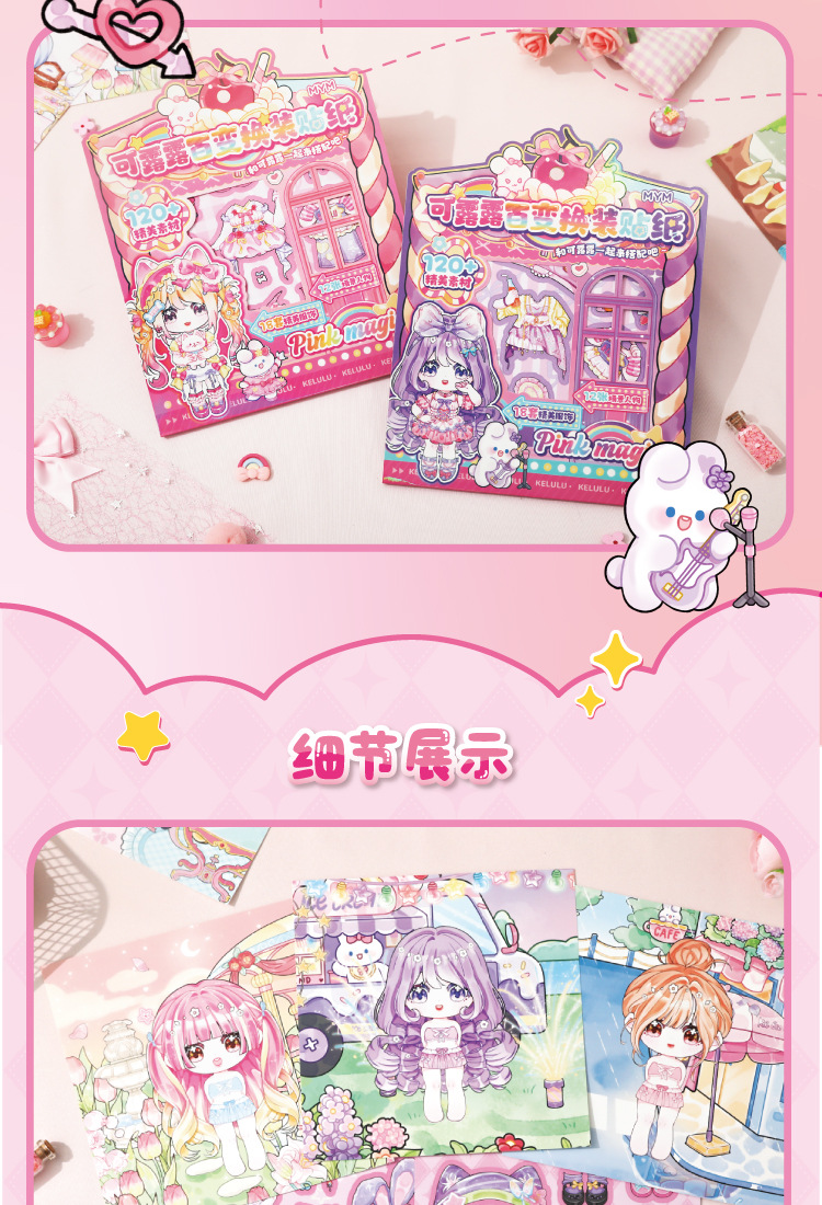 Kelulu Variety Sweetheart 시리즈 드레스업 스티커 시리즈 컷팅이 없는 소녀 드레스업 스티커 어린이 게임북스토어 가기