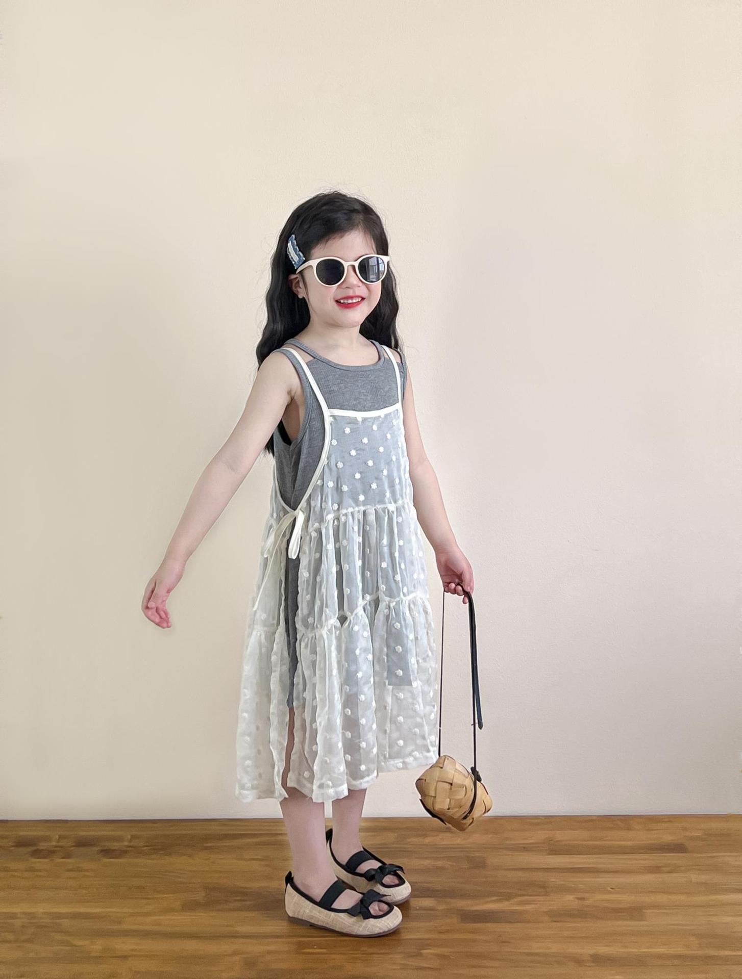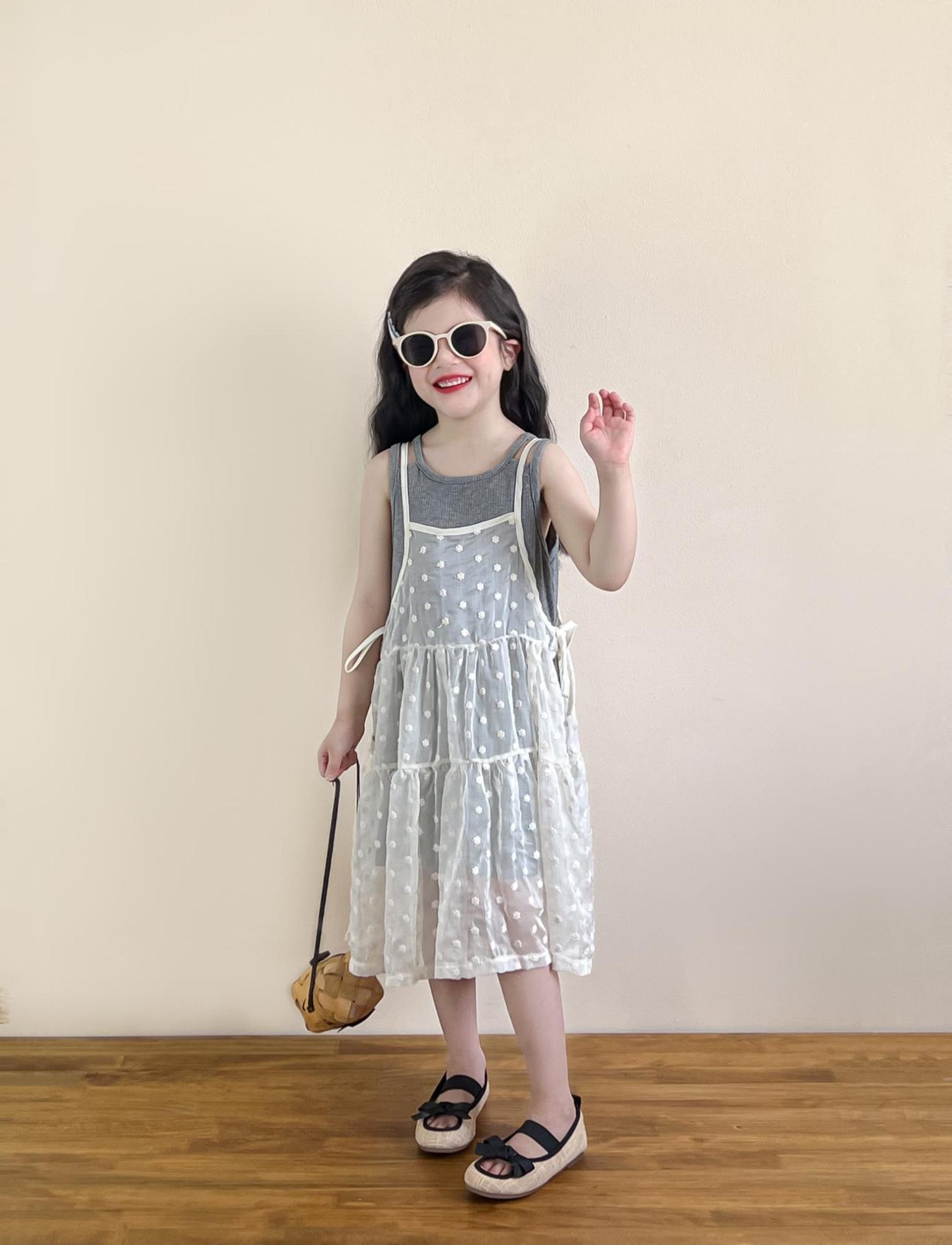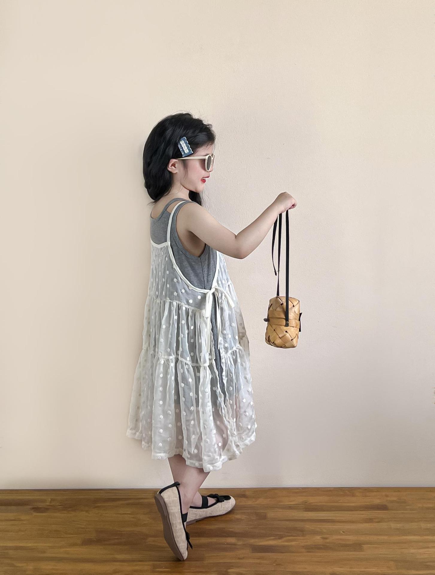 여아 여름 스위트 스타일 레이스 서스펜더 스커트 블라우스 레이어드 드레스 + 그레이 캐미솔 드레스 별도로 촬영