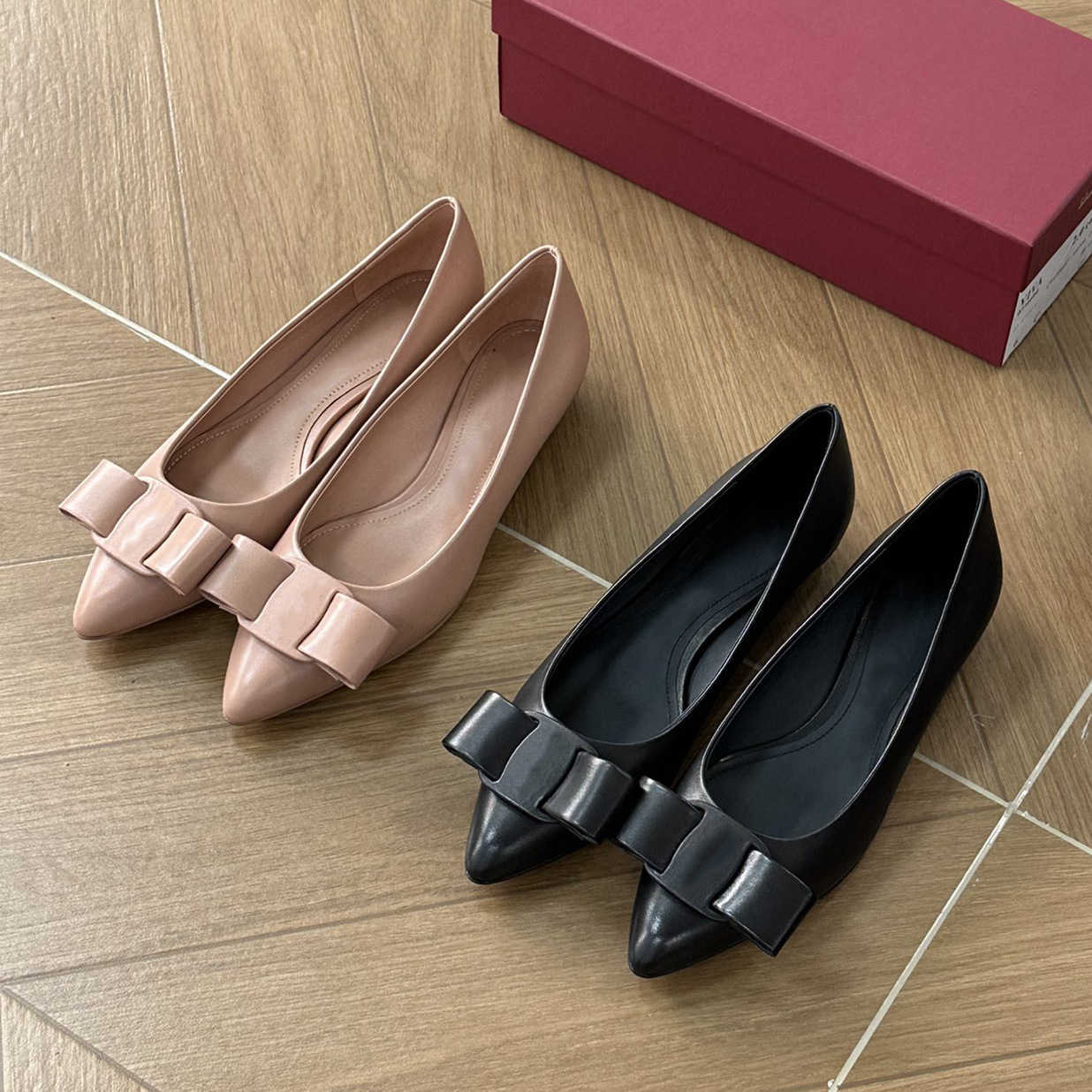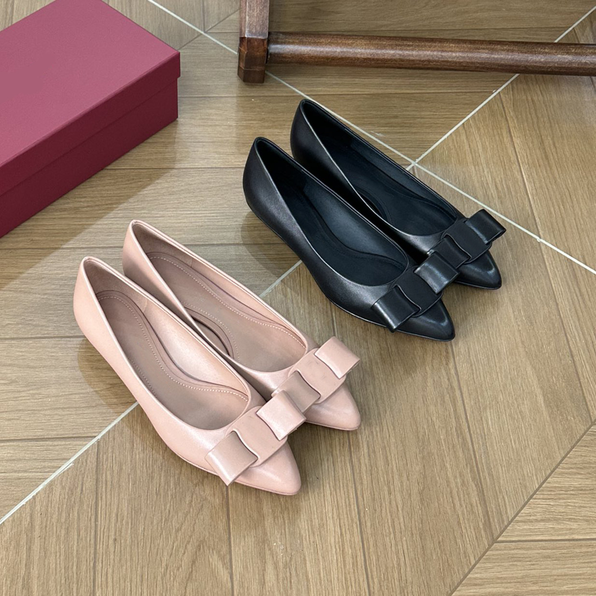 여성용 천연가죽 프렌치 스타일 포인티드 토 슈즈, 여성용 얕은 입구, 리본, 소가죽, 이브닝 스타일, 부드러운 밑창, 여성용 로우힐 슈즈스토어 가기