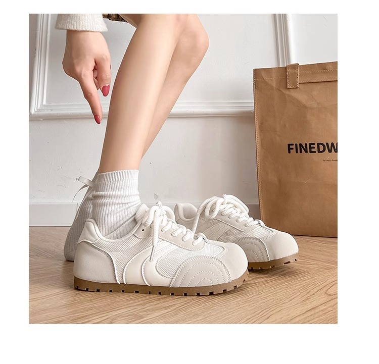 여성을위한 틈새 복고풍 라운드 투 훈련 신발 2025 새로운 봄 캐주얼 다목적 통기성 얇은 밑창 스포츠 플랫 신발스토어 가기