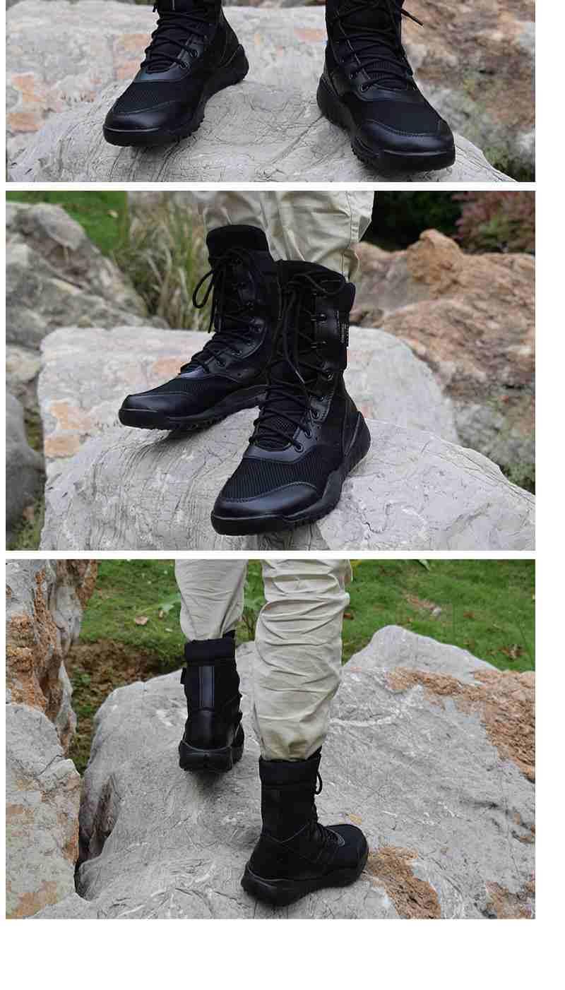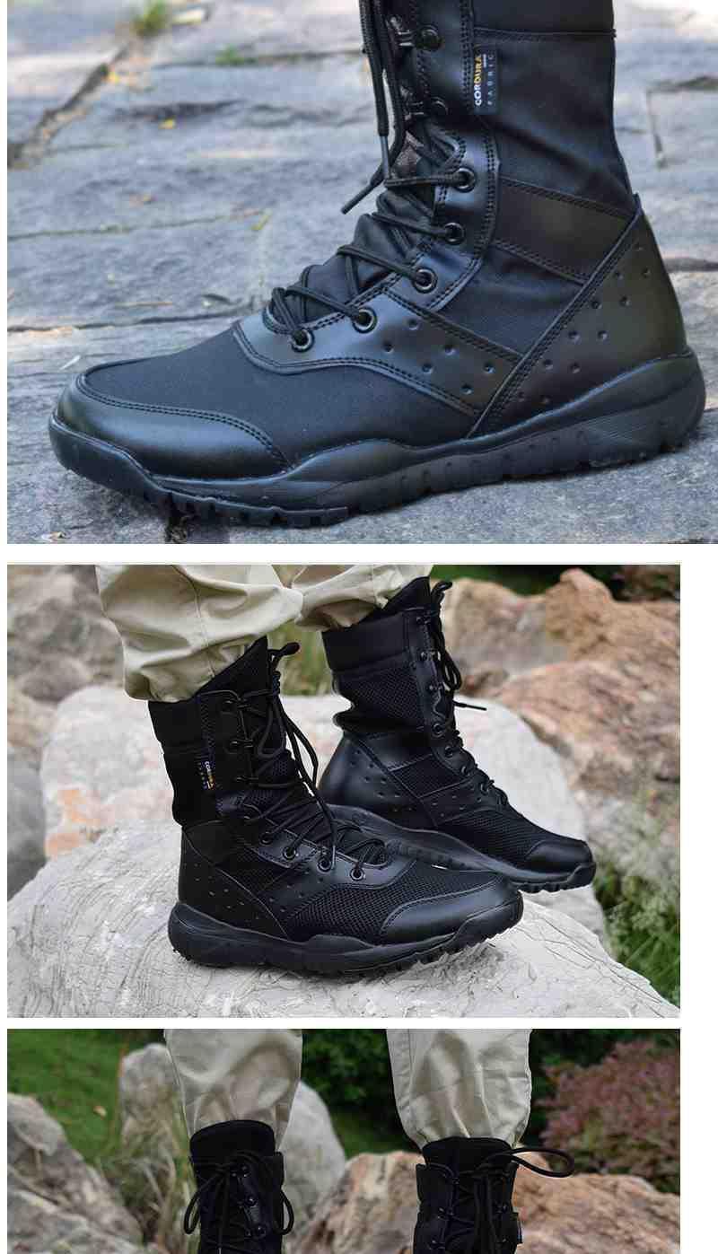 봄과 여름 메쉬 통기성 캔버스 남성 전술 부츠 보안 초경량 전투 부츠 부츠 사이드 지퍼 하이킹 부츠 야외스토어 가기