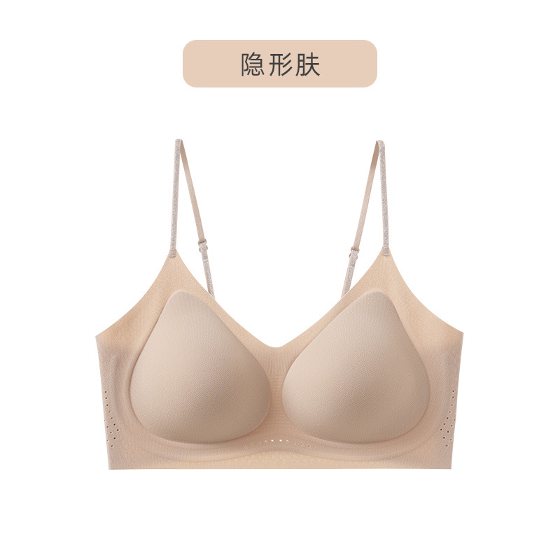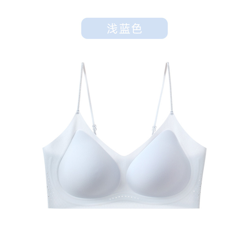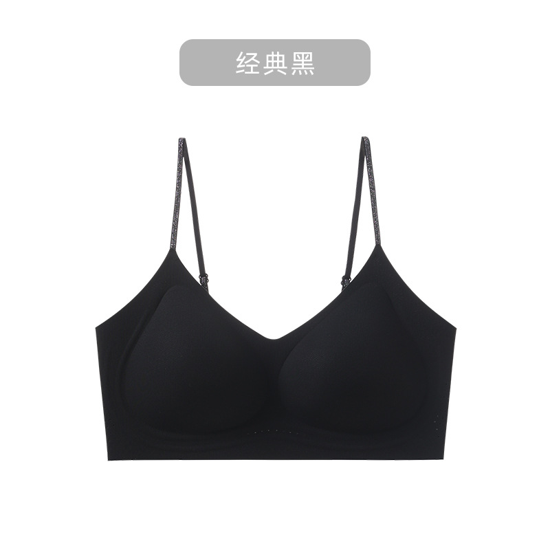 여름 얇은 반짝이는 다이아몬드 스파게티 스트랩 10A 항균 소프트 서포트 뷰티 백 브라 젤리 접착제 여성용 보이지 않는 트레이스리스 속옷