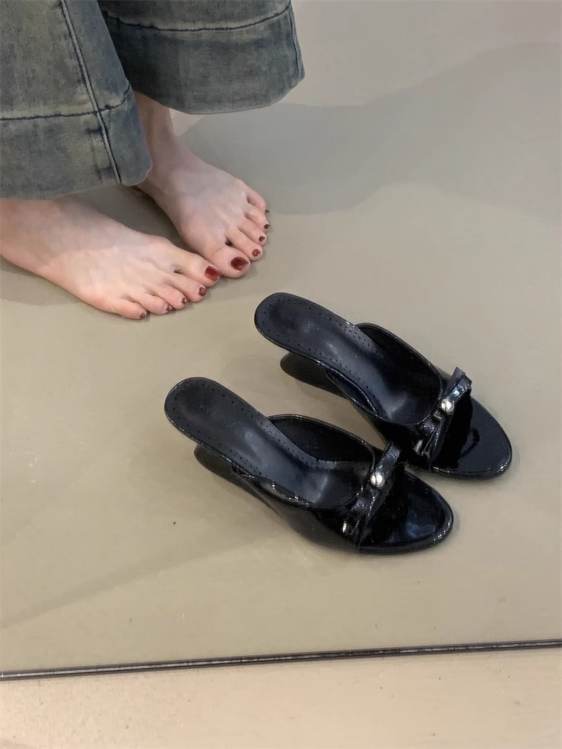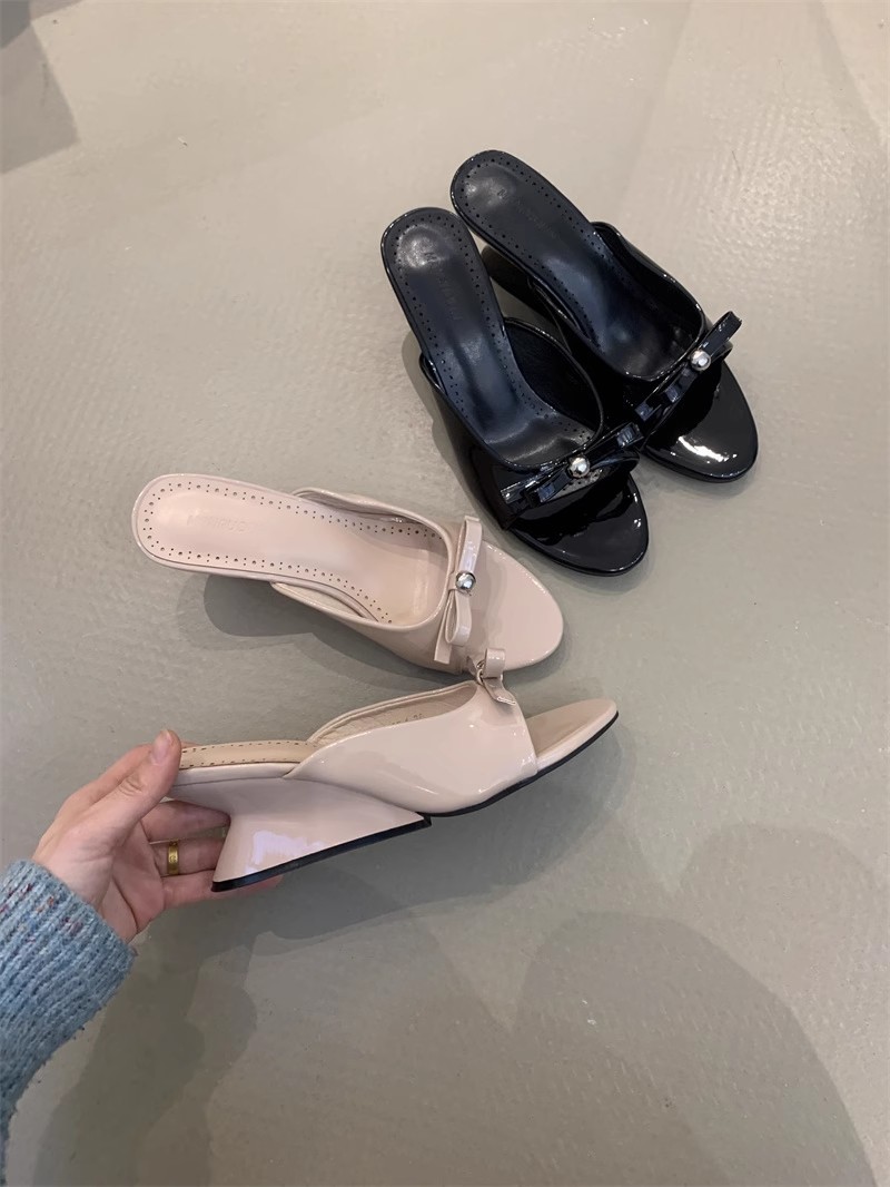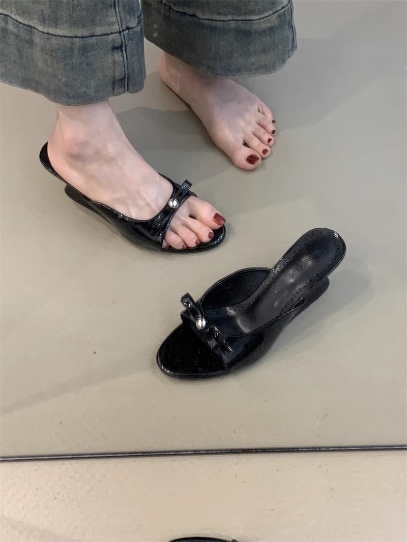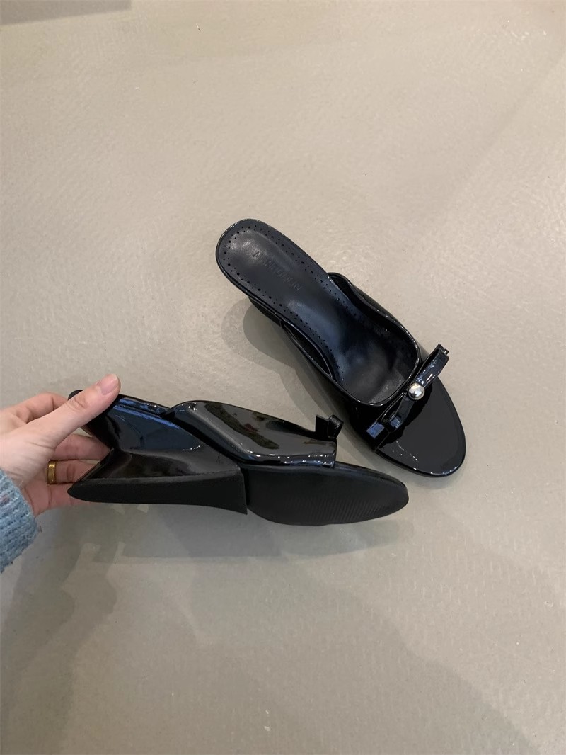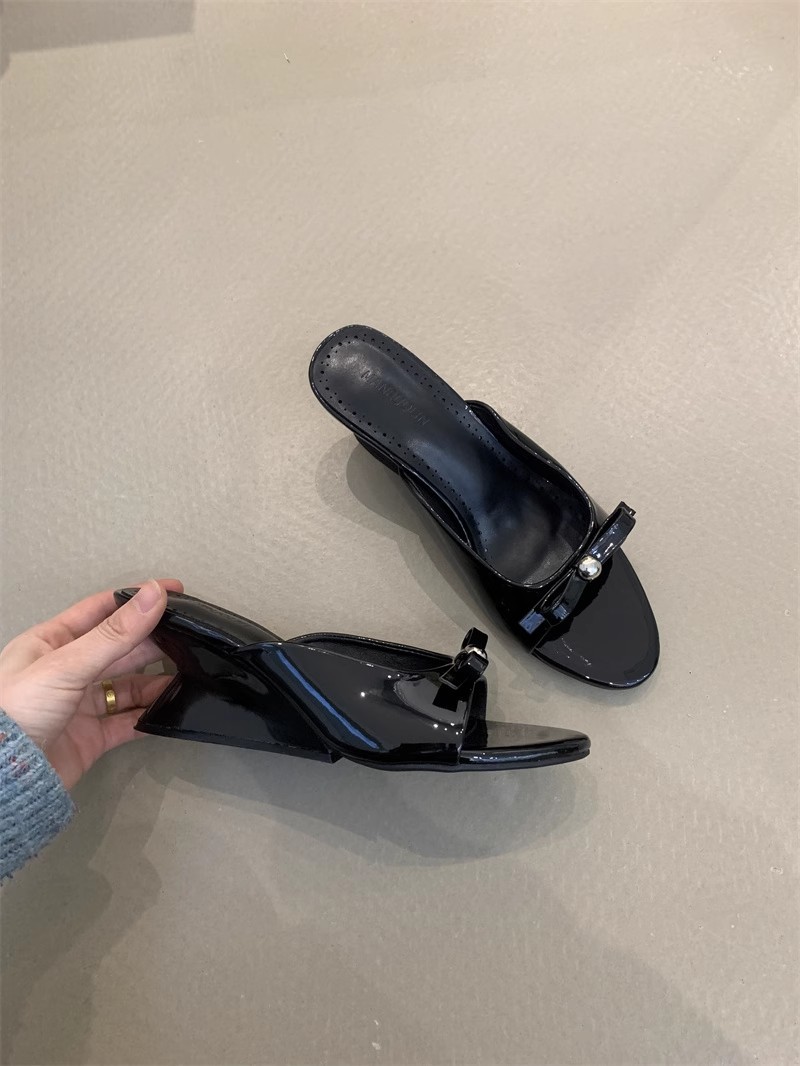 2025년 신상 여름 아우터 여성용 원스트랩 샌들, 여성용 웨지힐 샌들, 여성용 페이턴트 가죽 패셔너블한 고급 슬리퍼스토어 가기