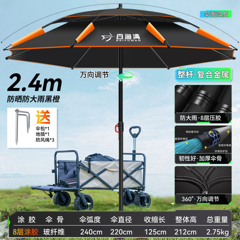 • 2.4m [지팡이가 있는 상위 모델] 이중 범용 방풍 및 방수