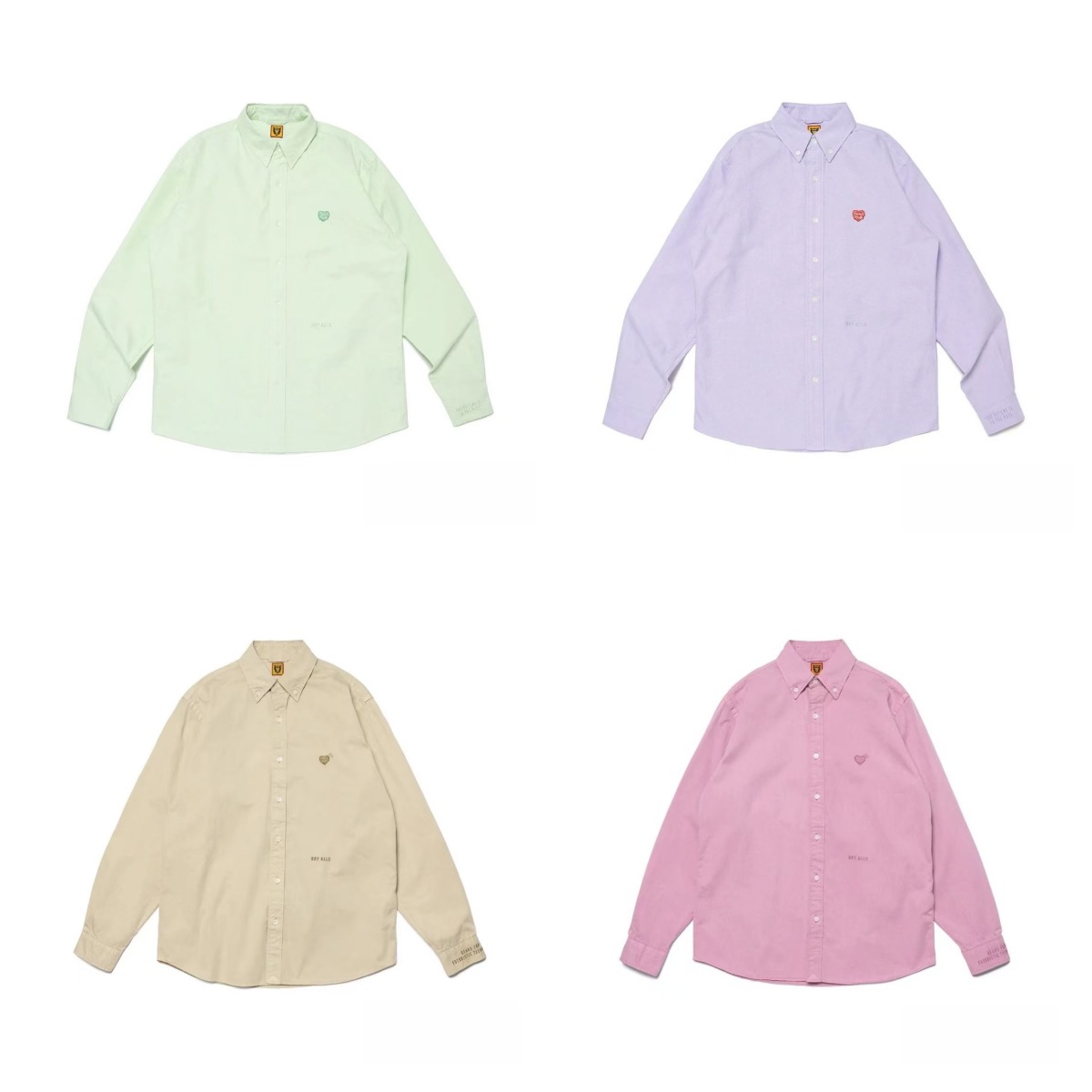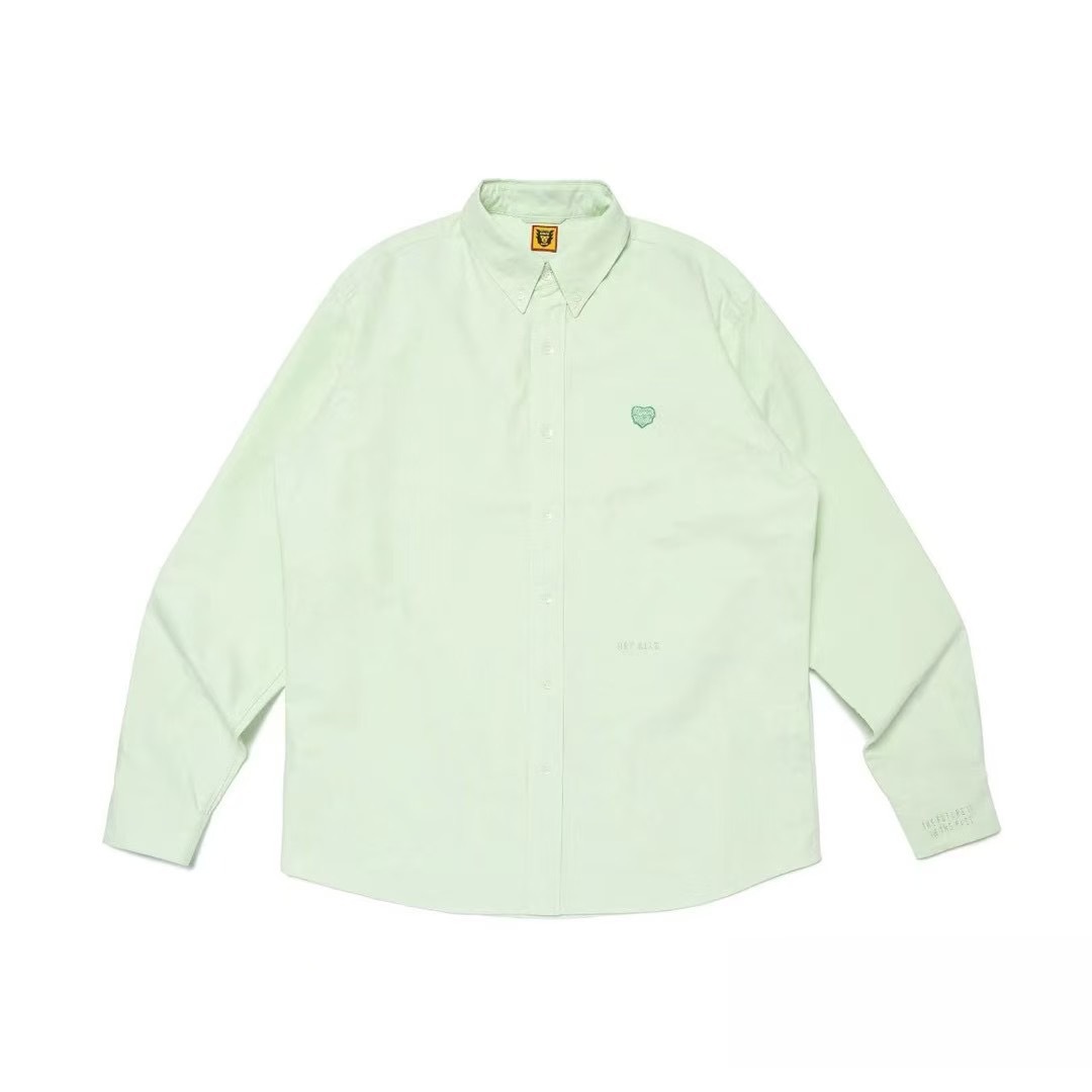 재고 있음 트렌디 브랜드 데일리 싱글 아신 같은 스타일 HUMAN 그린 긴팔 셔츠 러브 자수 셔츠스토어 가기