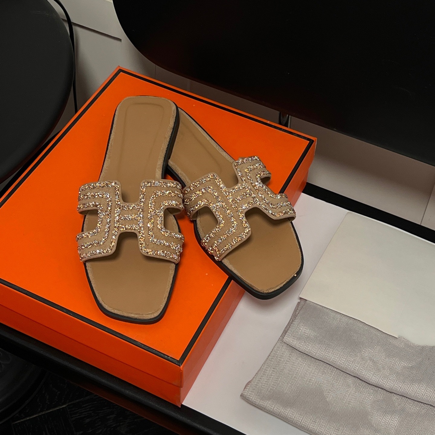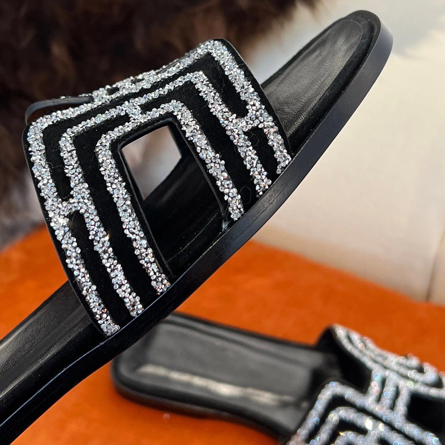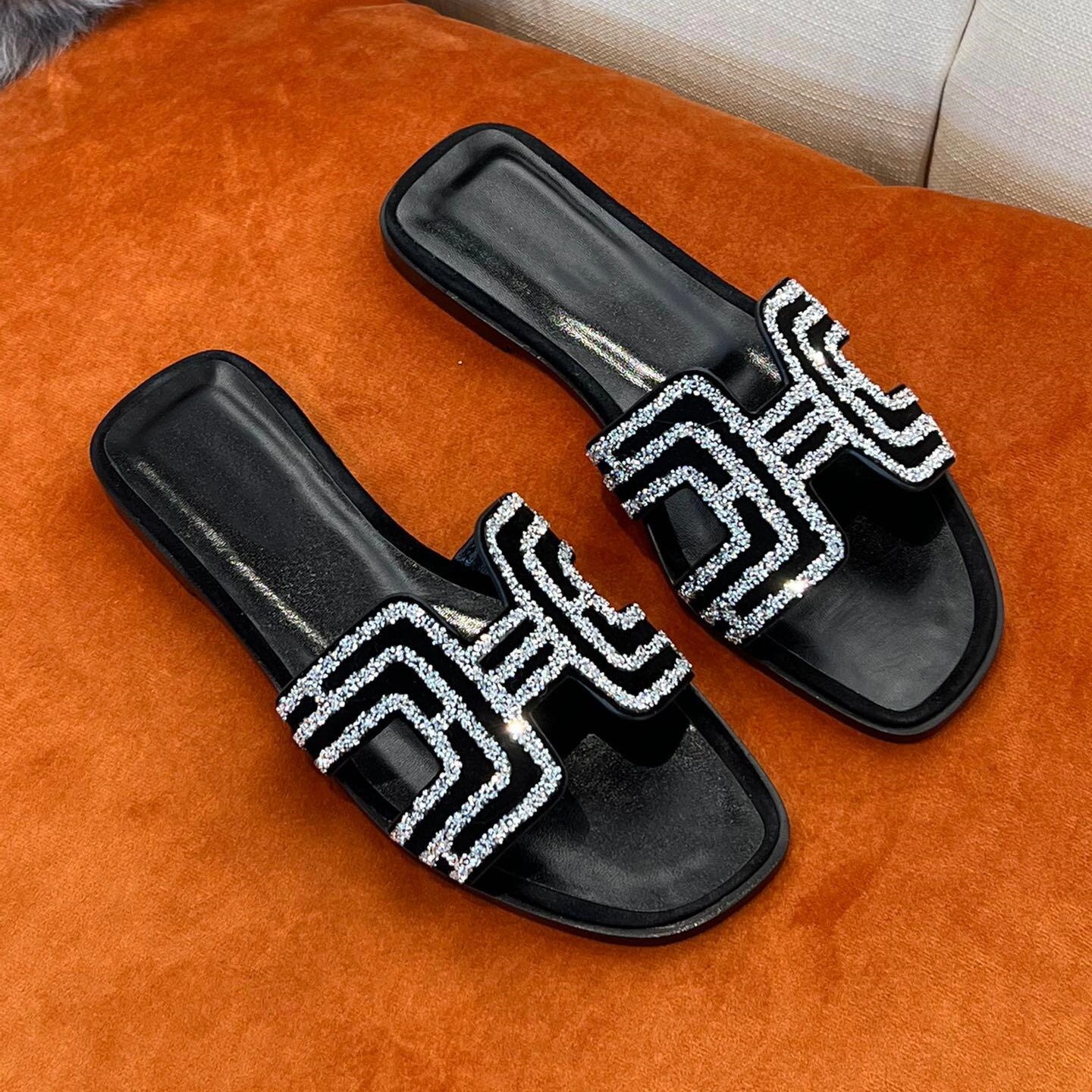여성을위한 태슬 라인스톤 h 슬리퍼 2025 여름 신작 정품 가죽 스퀘어 토 캐주얼 다용도 플랫 샌들 아우터웨어스토어 가기