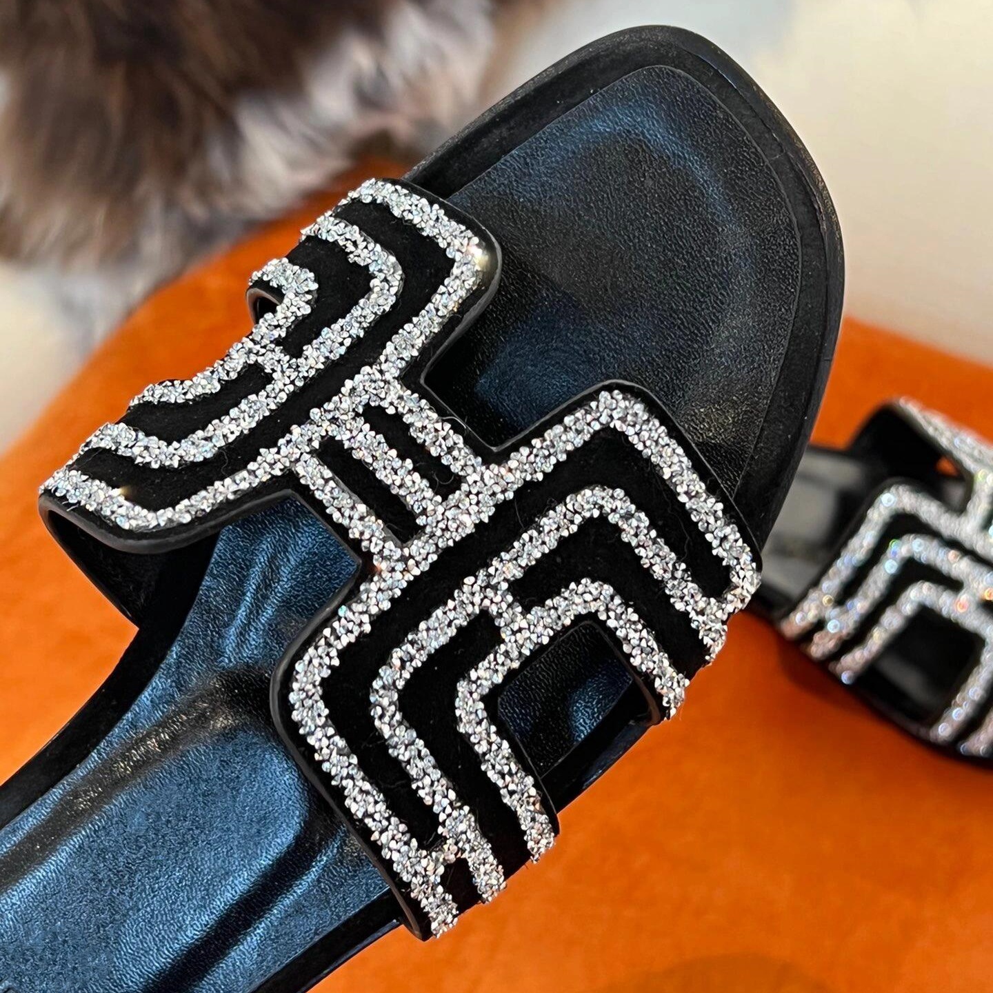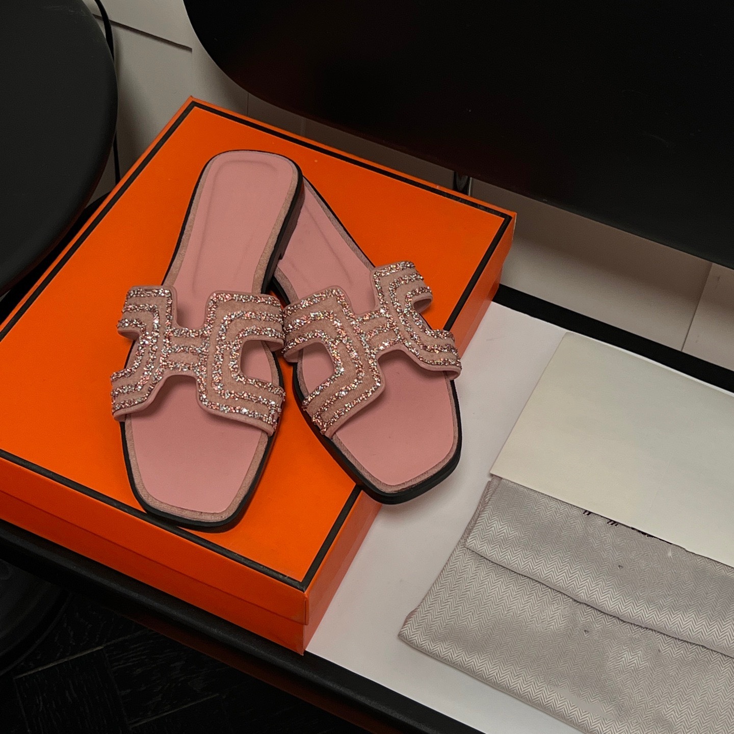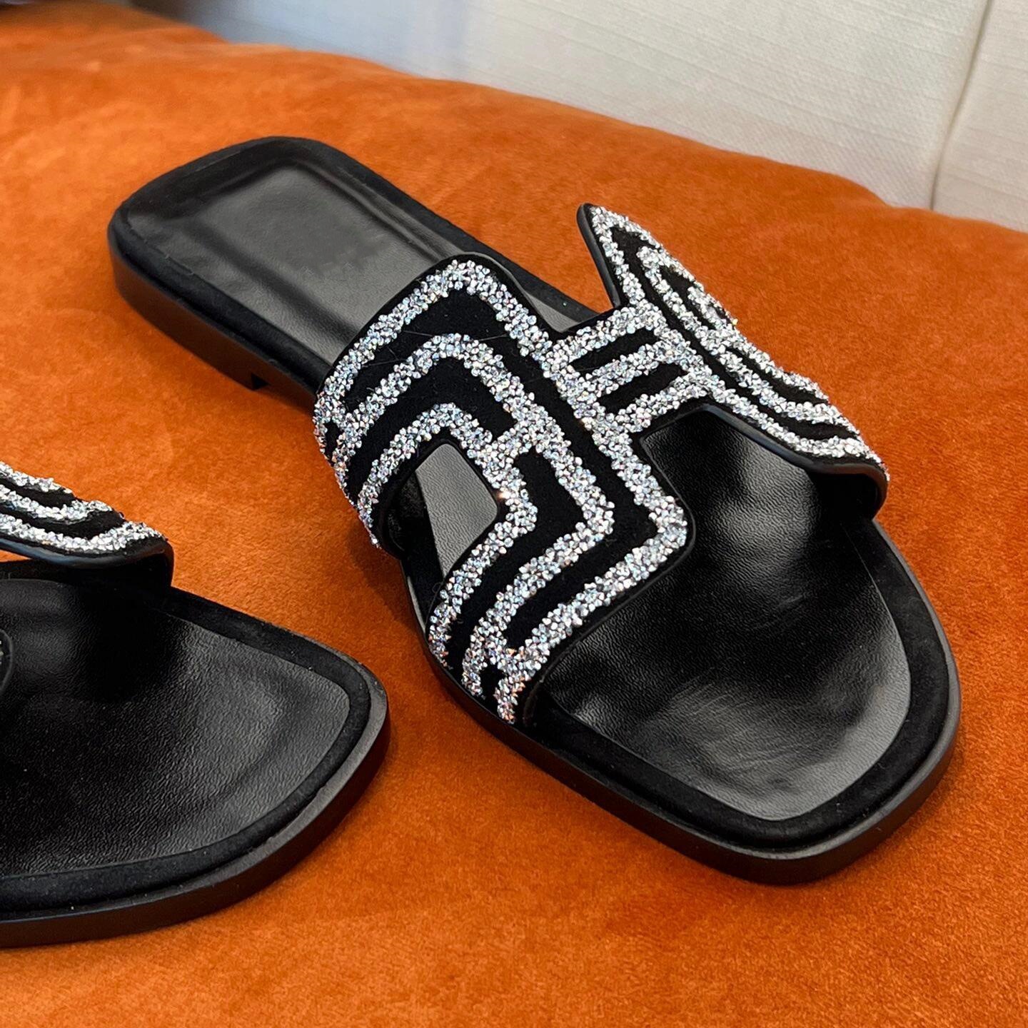 여성을위한 태슬 라인스톤 h 슬리퍼 2025 여름 신작 정품 가죽 스퀘어 토 캐주얼 다용도 플랫 샌들 아우터웨어스토어 가기