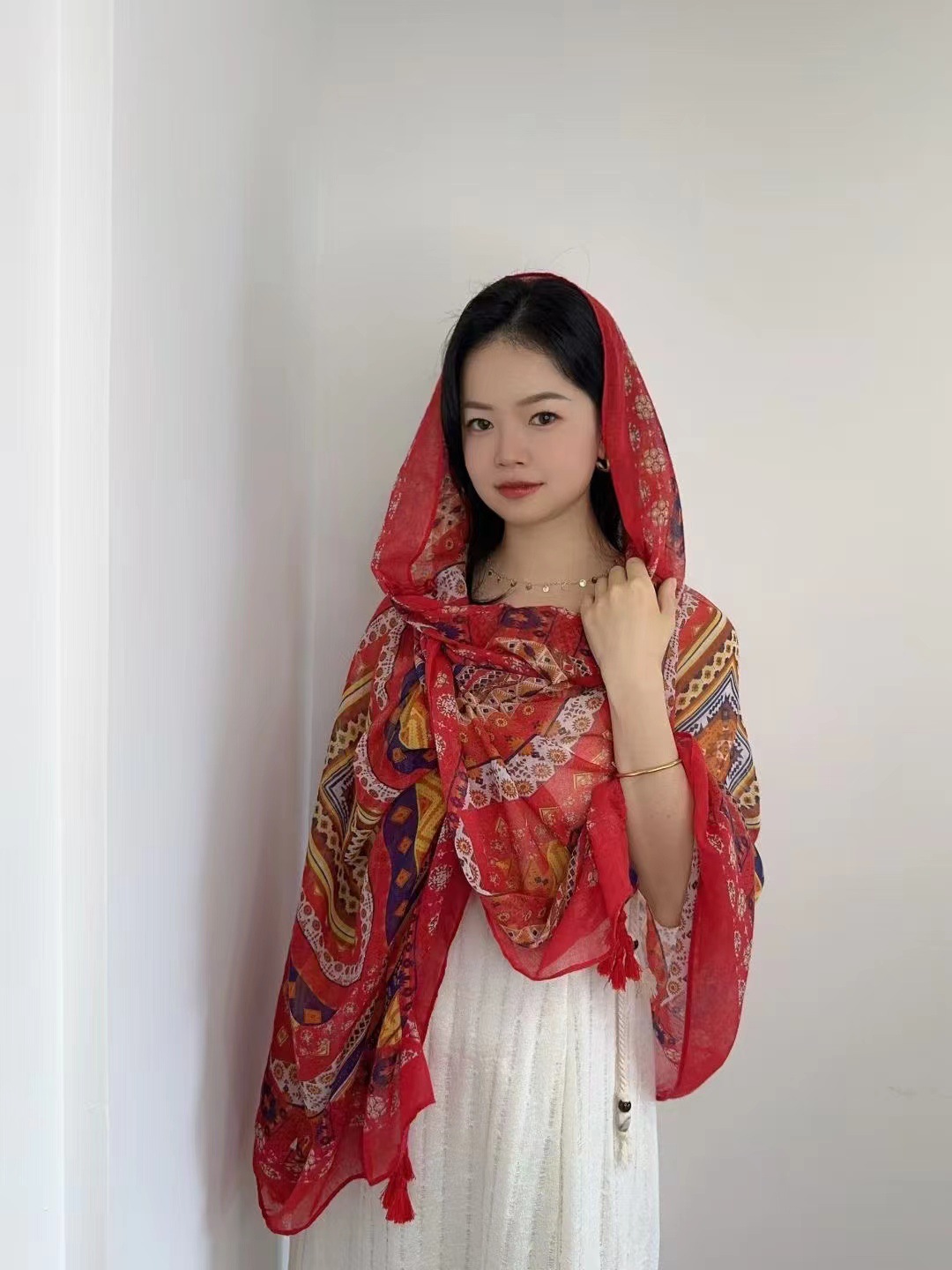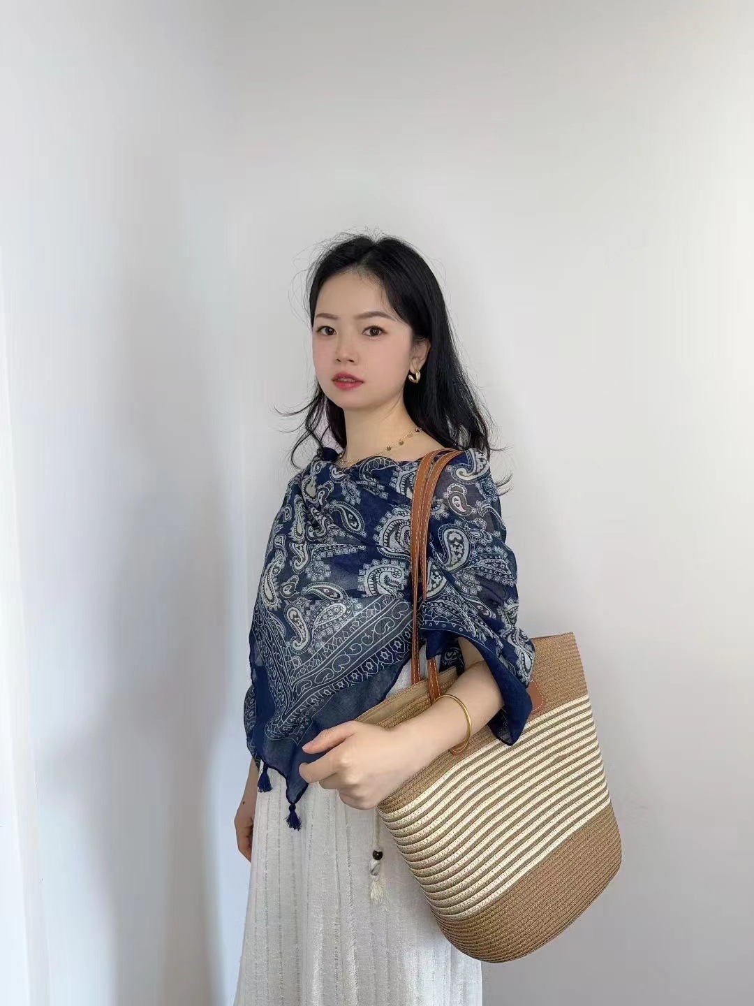 라이브 방송에서 가장 잘 팔리는 새로운 버클 여름 얇은 여행 숄 태슬 다용도 민족 스타일 실크 스카프 블라우스 비치 타월스토어 가기