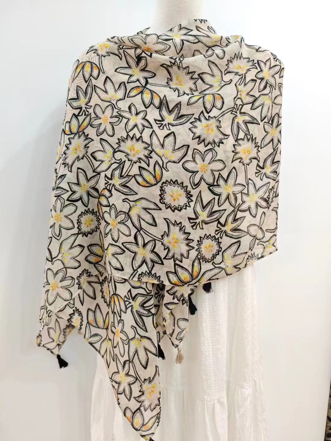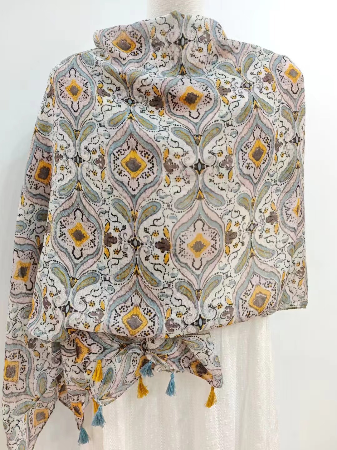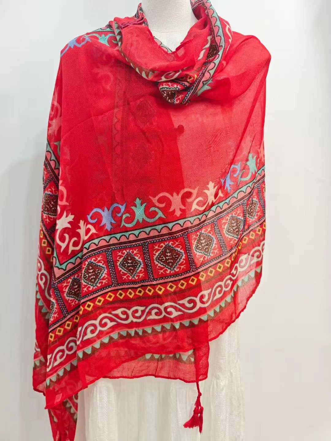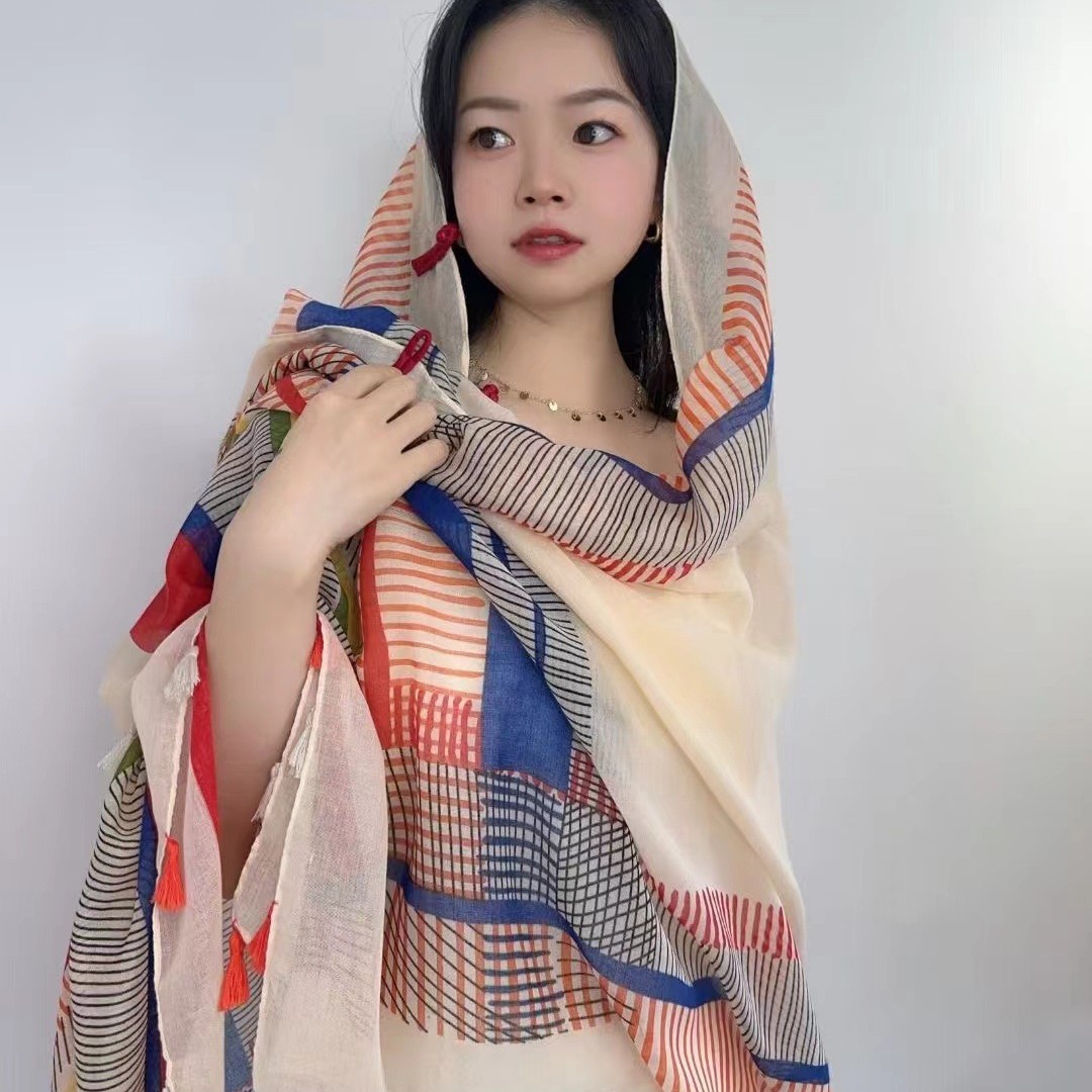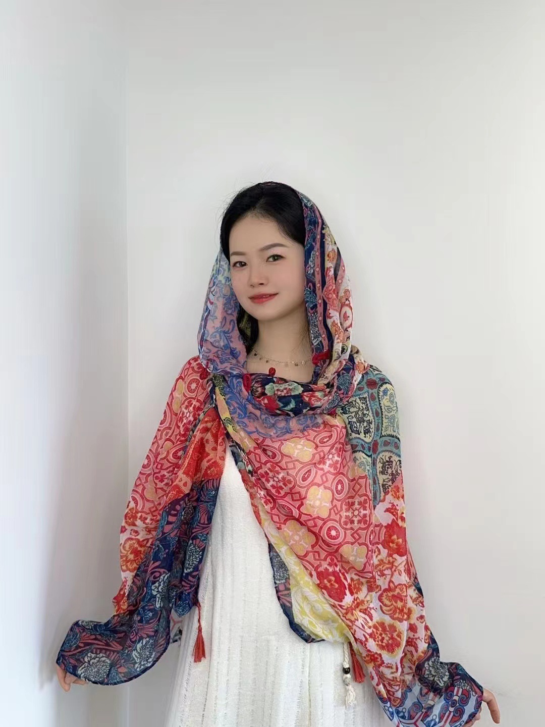 라이브 방송에서 가장 잘 팔리는 새로운 버클 여름 얇은 여행 숄 태슬 다용도 민족 스타일 실크 스카프 블라우스 비치 타월