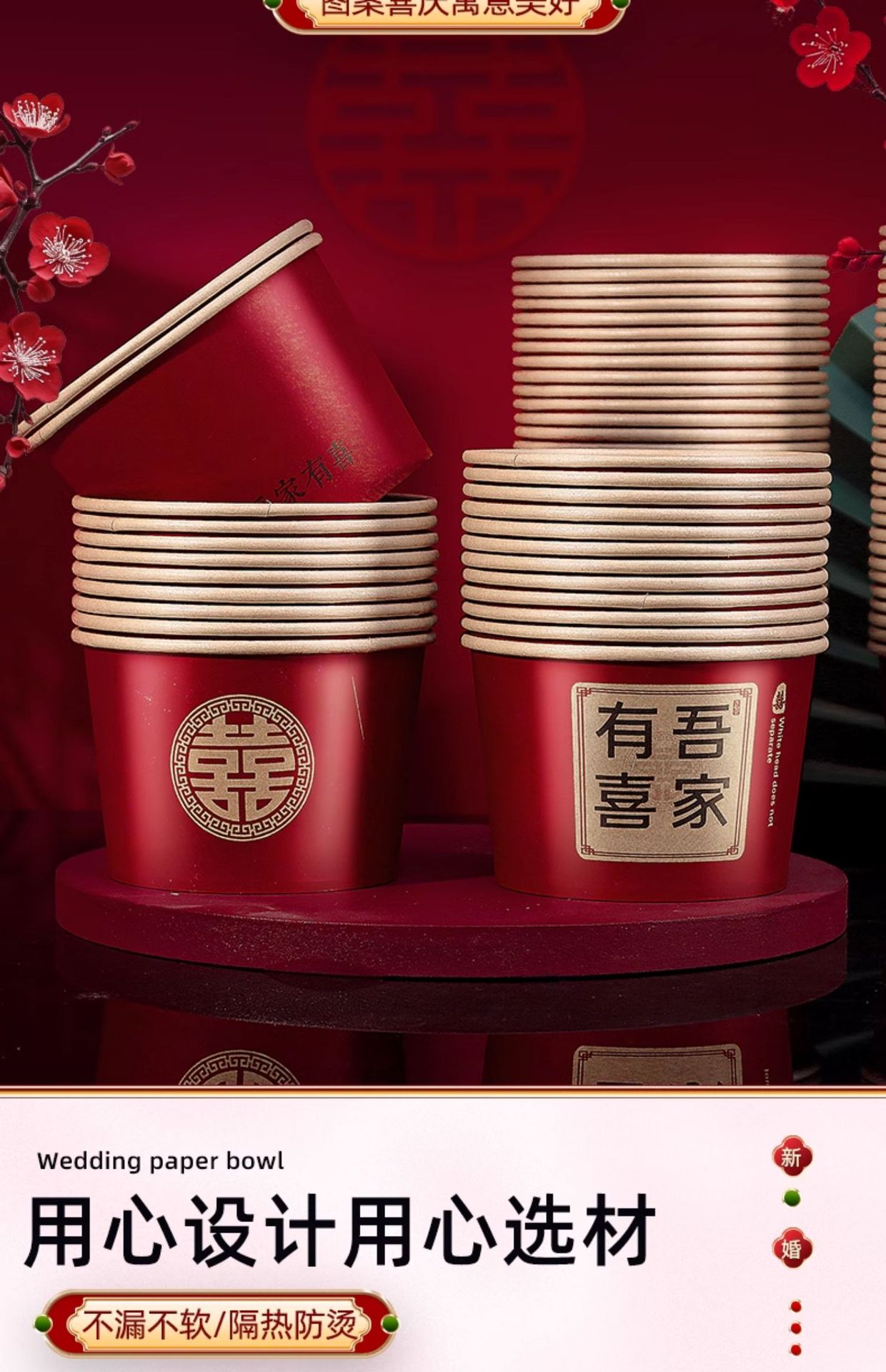 웨딩 그릇, 두꺼운 붉은 종이 그릇, 웨딩 연회 그릇과 젓가락, 웨딩 연회 종이컵, 일회용 식기, 웨딩 세트