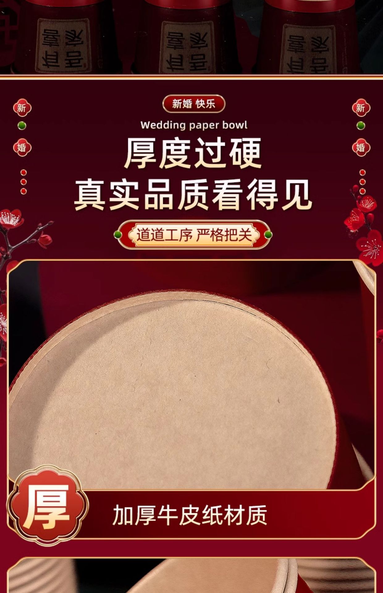 웨딩 그릇, 두꺼운 붉은 종이 그릇, 웨딩 연회 그릇과 젓가락, 웨딩 연회 종이컵, 일회용 식기, 웨딩 세트스토어 가기