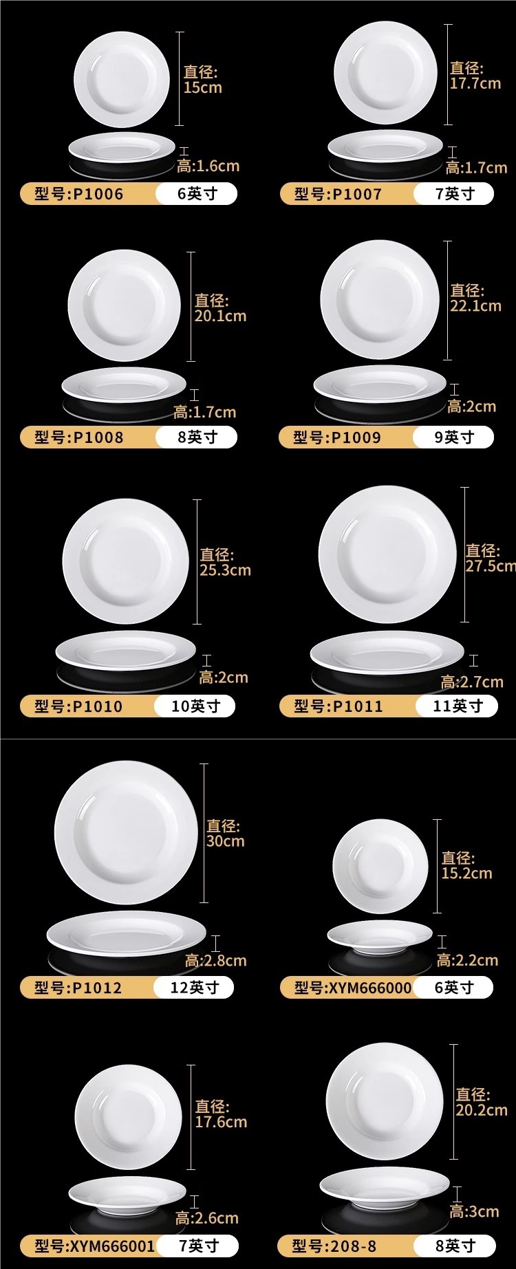 멜라민 원형 접시 플라스틱 케이터링 접시 상업용 호텔 화이트 뷔페 접시 원형 접시 뼈 접시스토어 가기