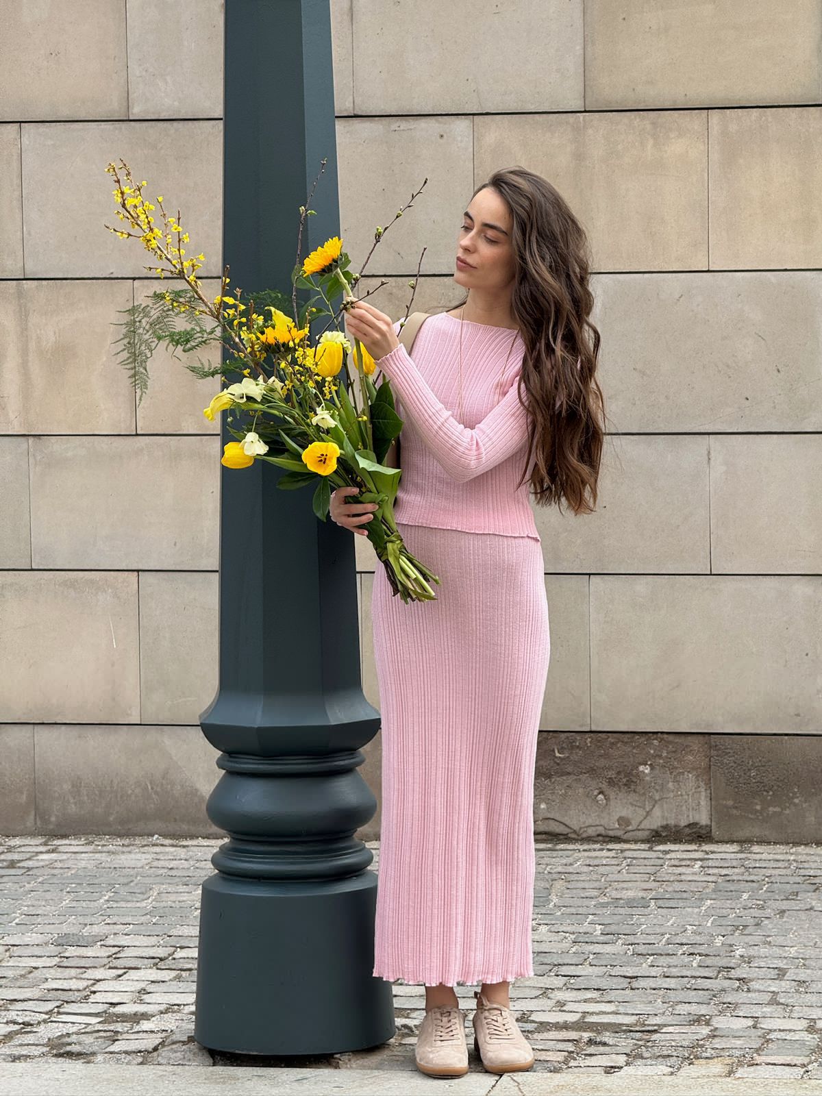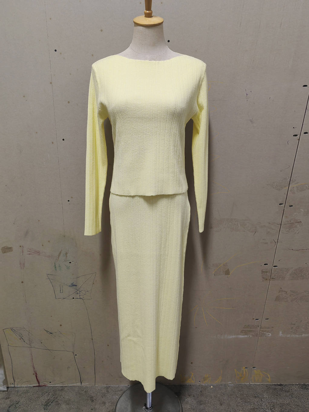 2025 봄, 가을 여성 유럽과 미국 스타일의 슬림 투피스 긴팔 니트 탑 + 롱 스커트 슈트스토어 가기