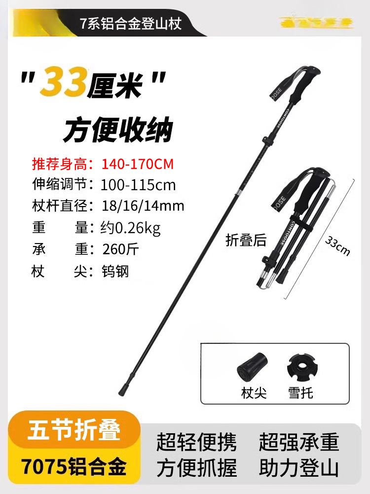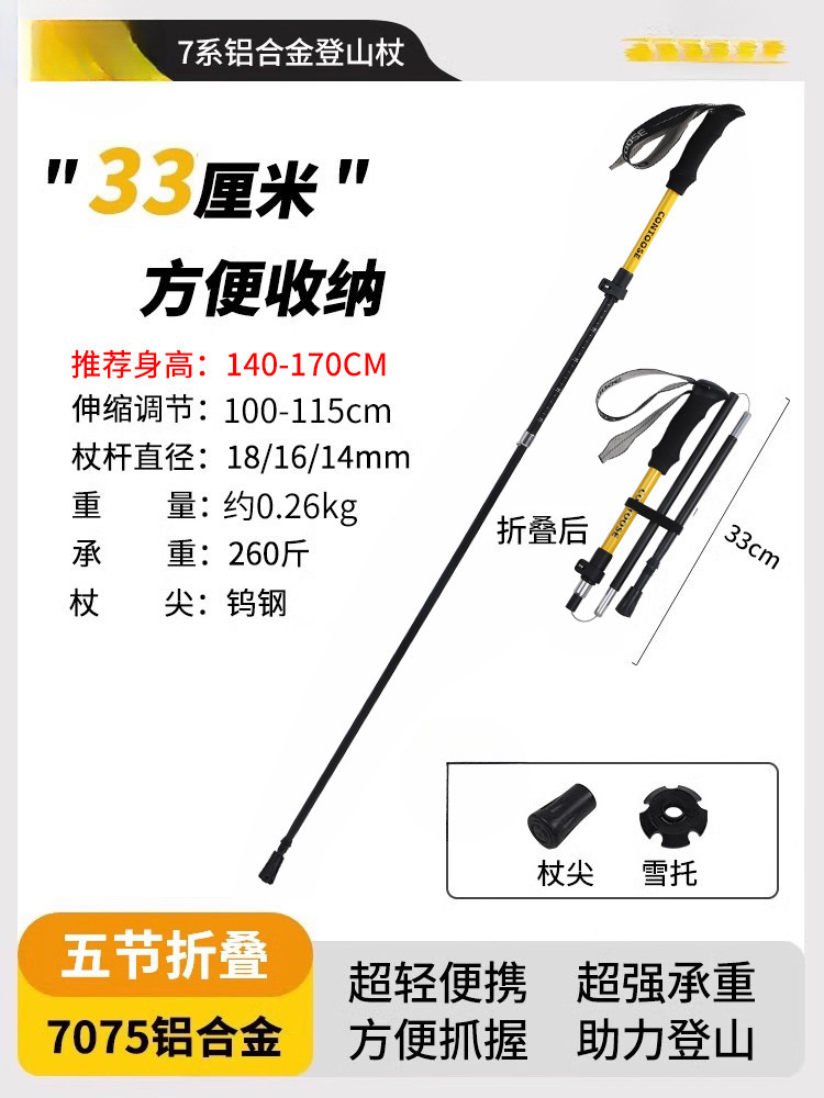 • [7075 알루미늄 합금 접이식 쇼트 스타일] 아름다운 노란색 [컴팩트한 수납] [튼튼하고 내구성이 좋음]