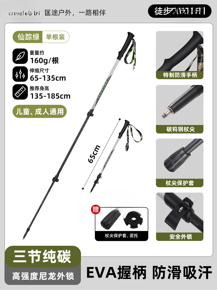 전문 야외 등산 지팡이, 탄소 섬유 접이식 텔레스코픽 지팡이, 남성용 및 여성용 등산 지팡이, 하이킹 장비 도매스토어 가기