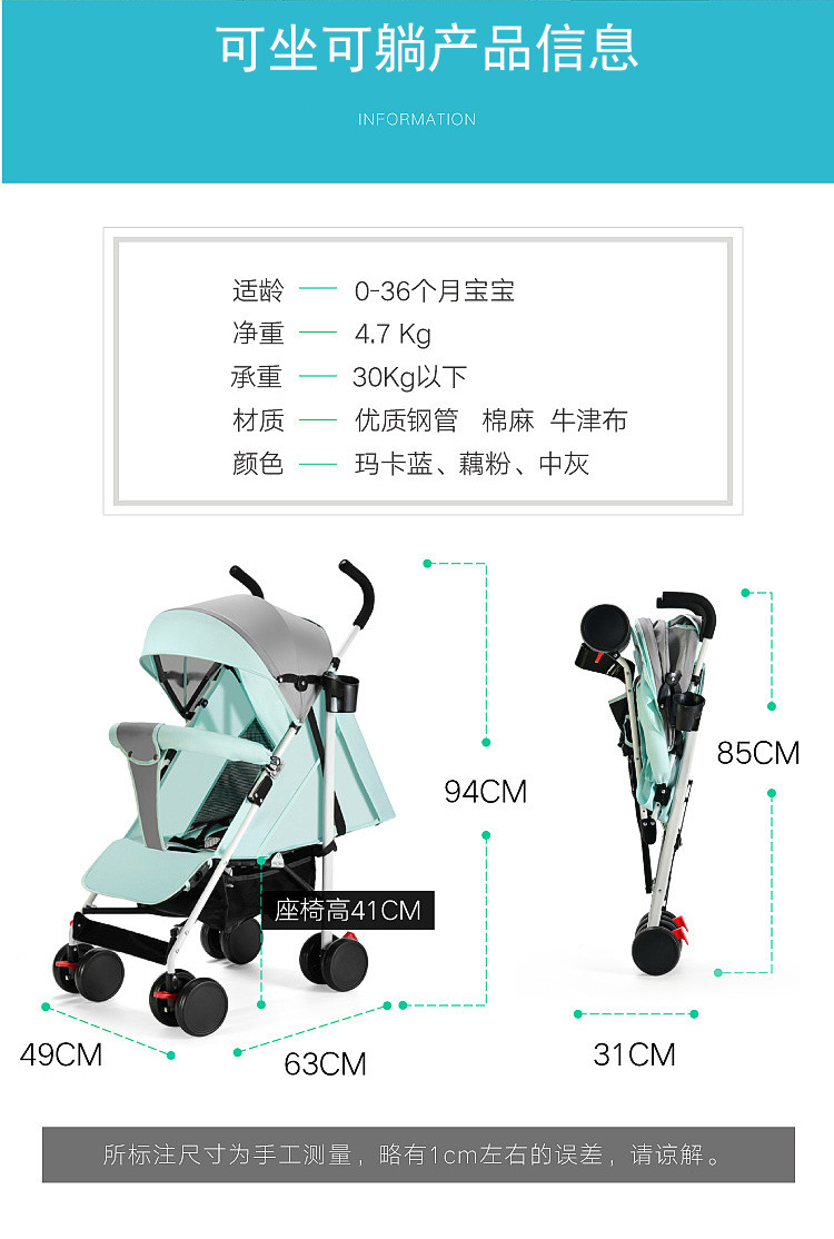 초경량, 휴대성이 뛰어나고 앉고 누울 수 있는 유모차, 접이식, 간편한 아기 외출, 사계절 만능 우산 유모차, 공장 국경 간스토어 가기