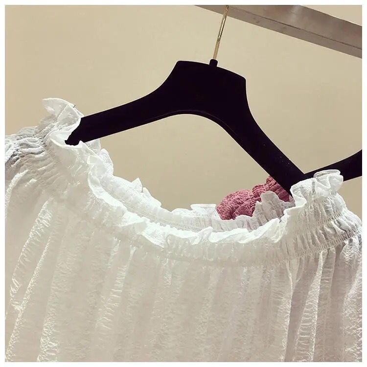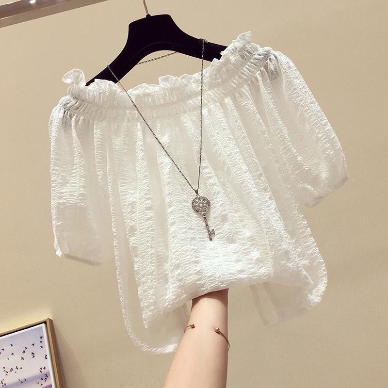 흰색 원 숄더 쉬폰 셔츠 여성 반팔 2021 신작 여름 한국 스타일 통근용 루즈 플리츠 풀오버 탑스토어 가기