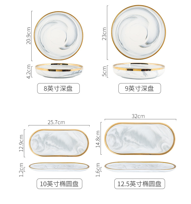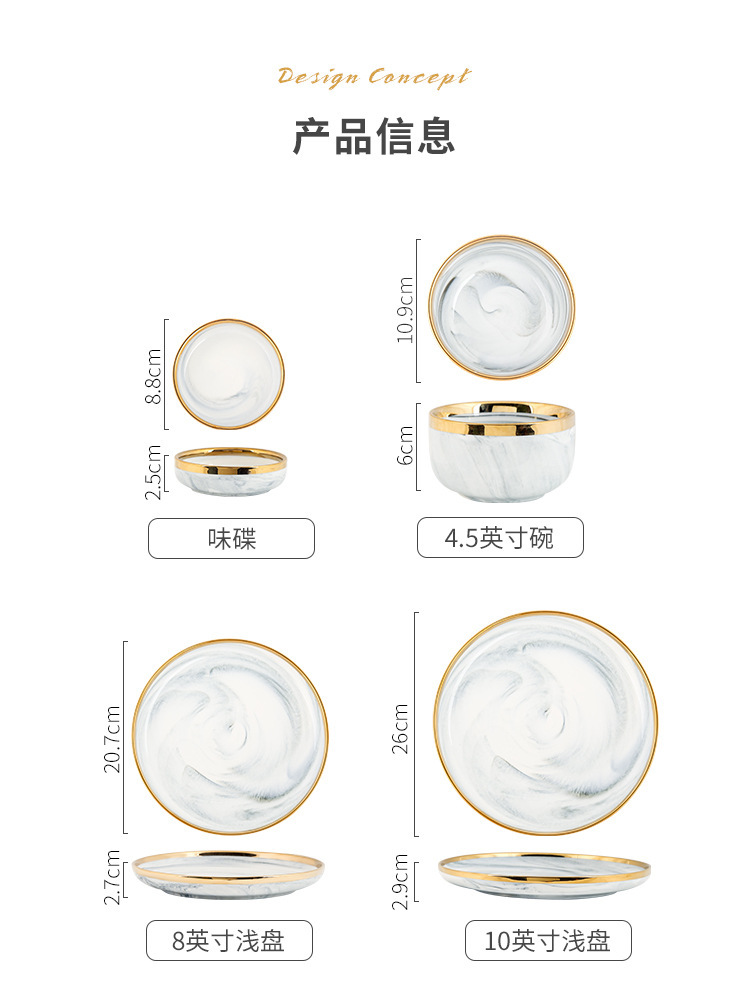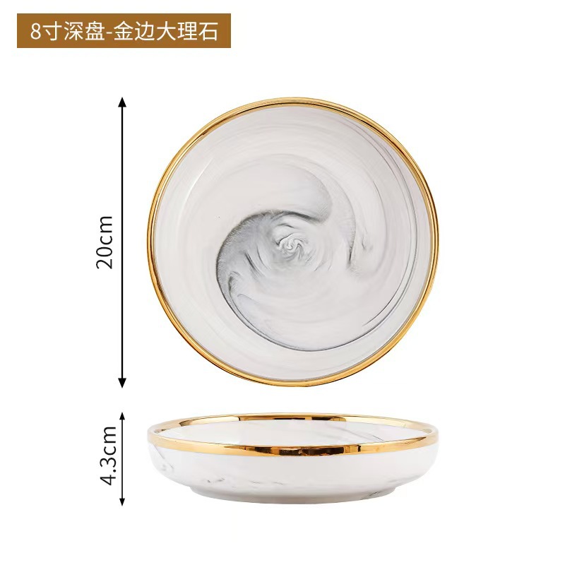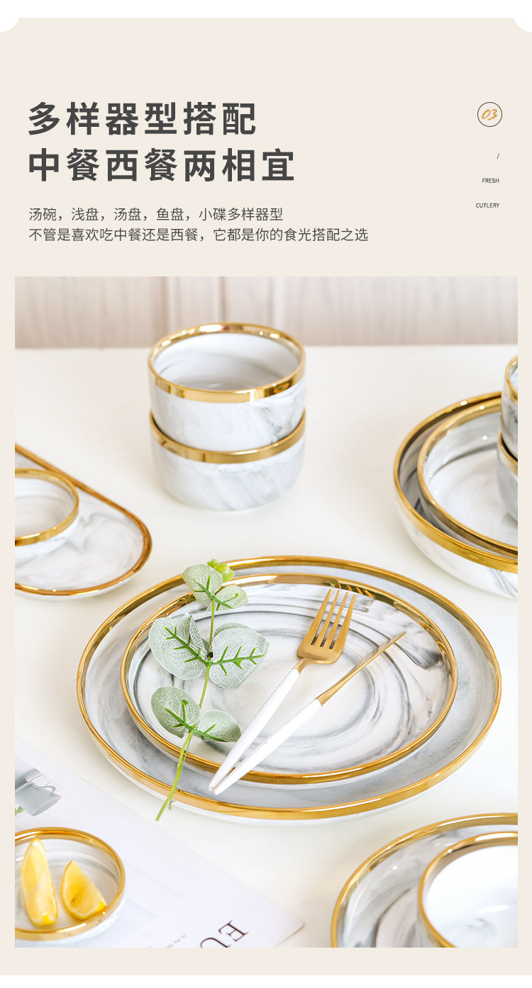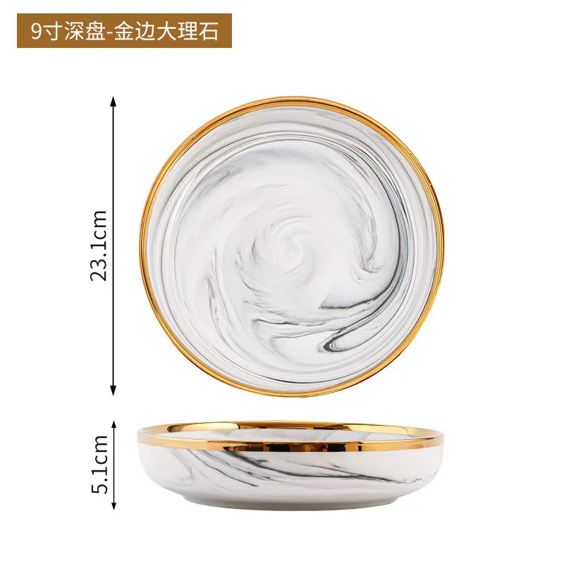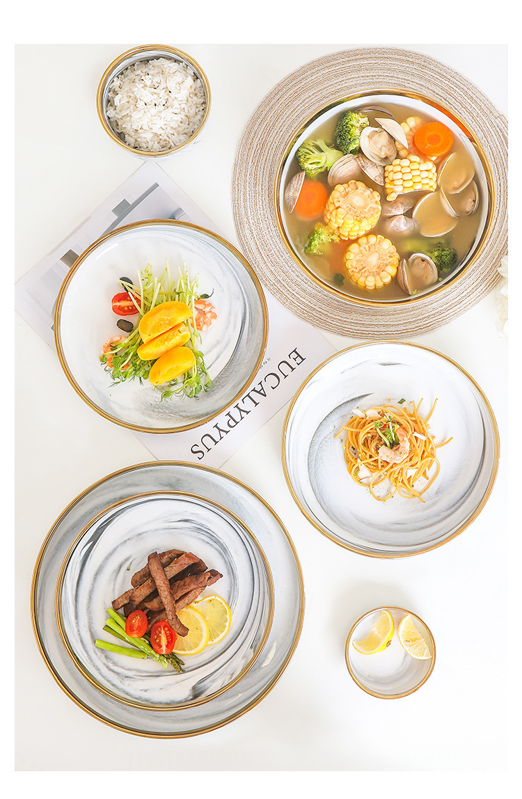 대리석 무늬 금테 도자기 식기 세트 가정용 그릇 접시 수프 그릇 숟가락 도매스토어 가기
