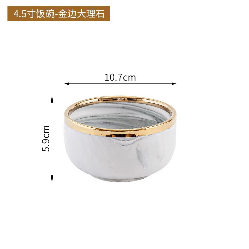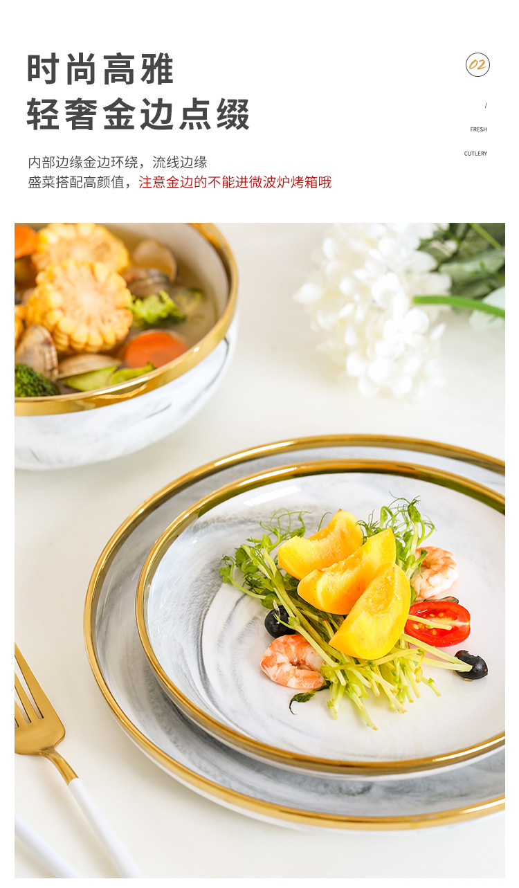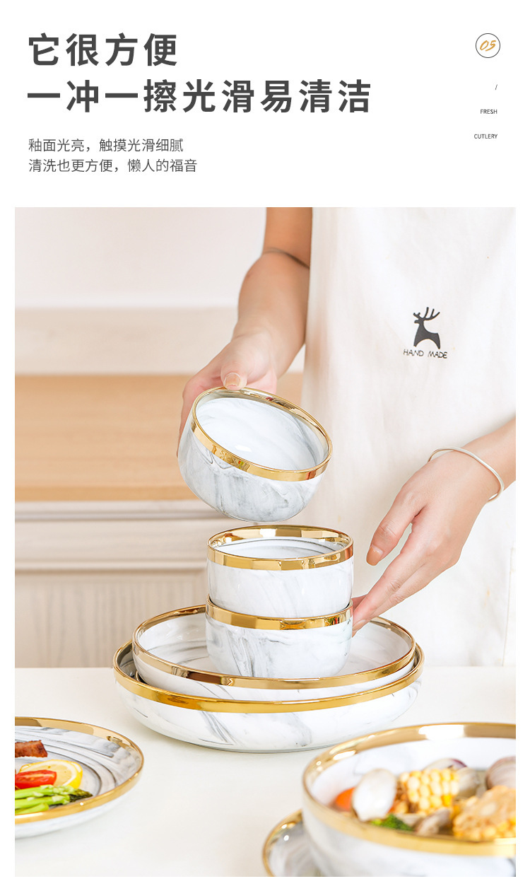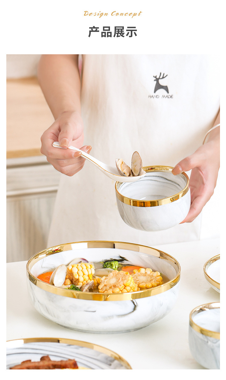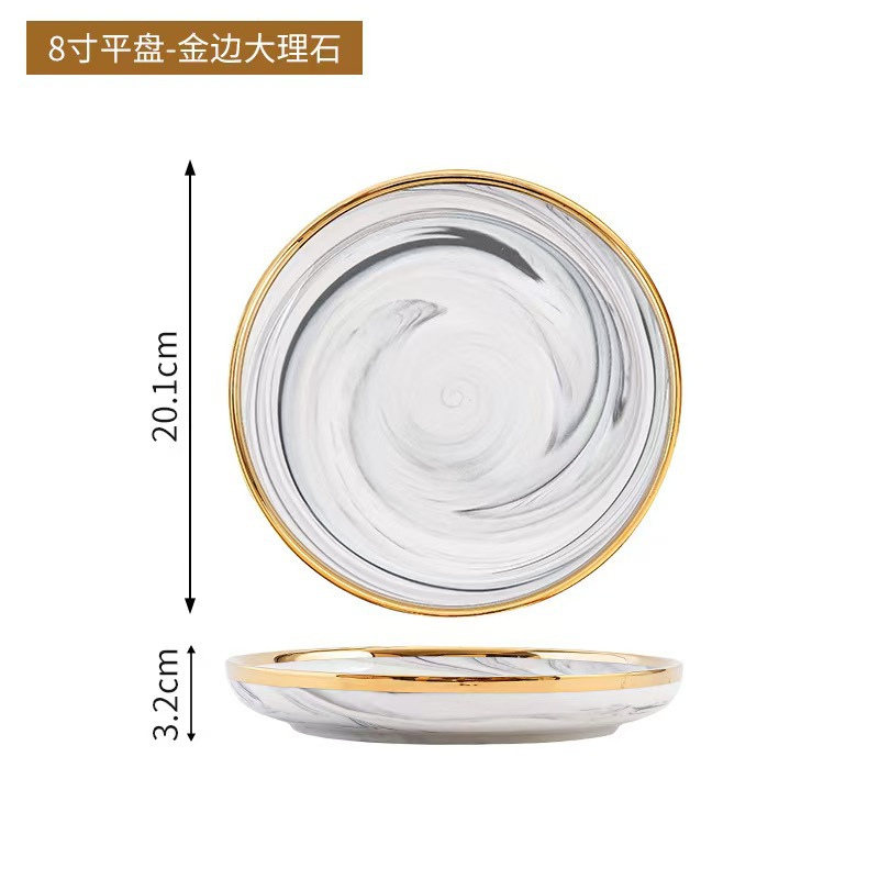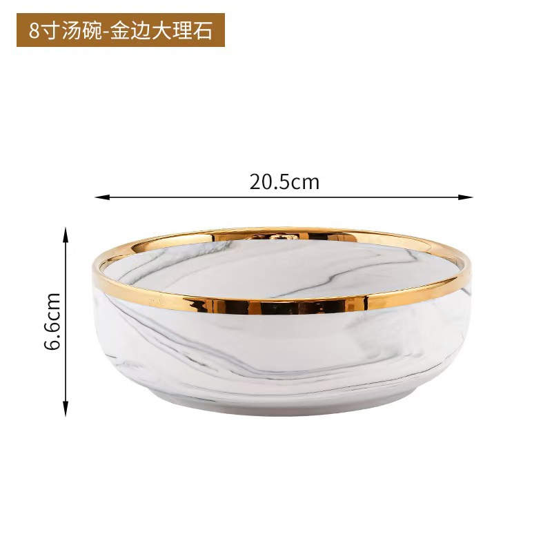대리석 무늬 금테 도자기 식기 세트 가정용 그릇 접시 수프 그릇 숟가락 도매스토어 가기