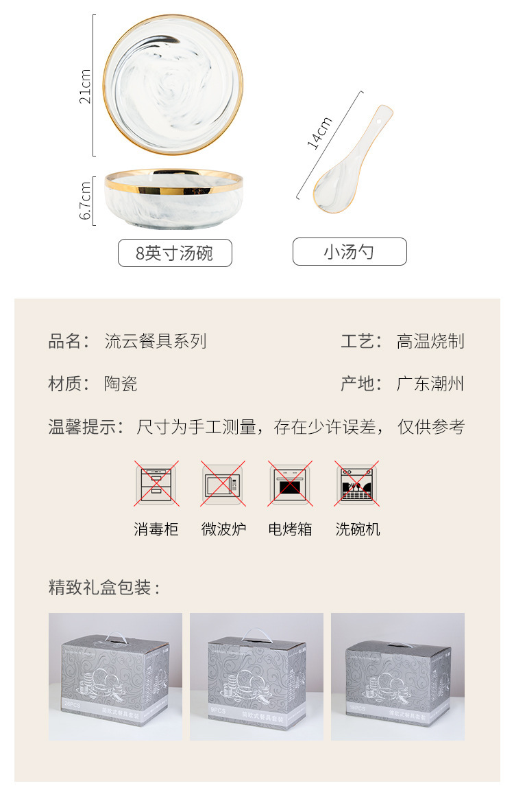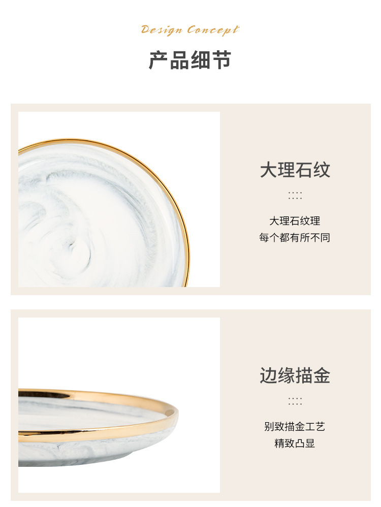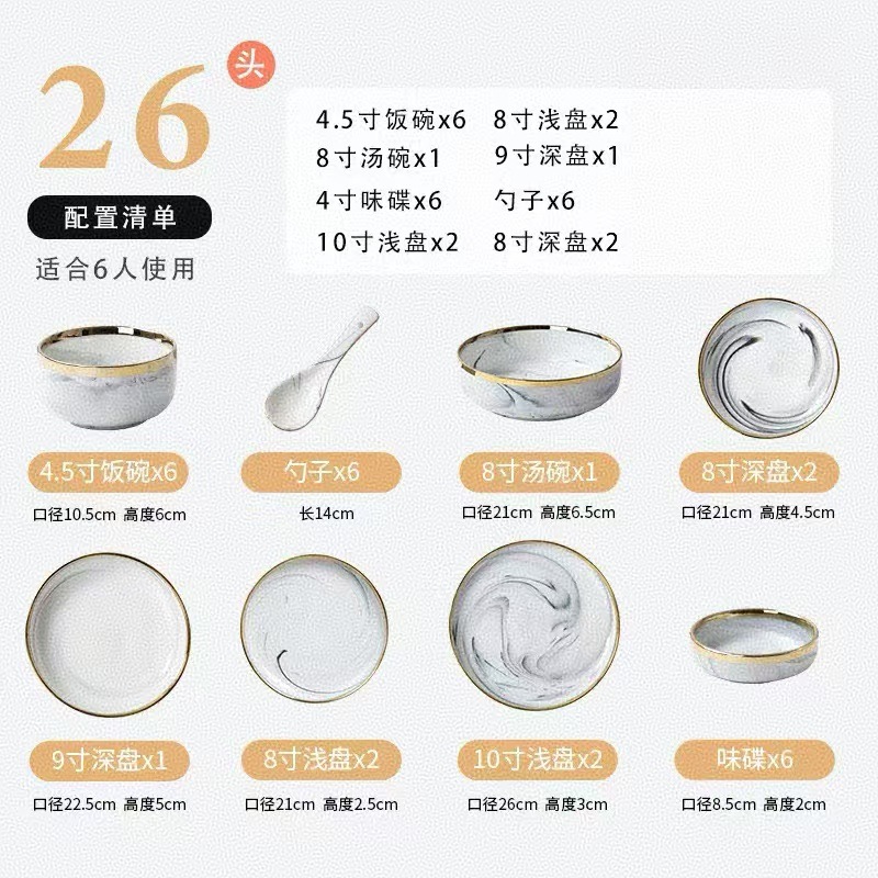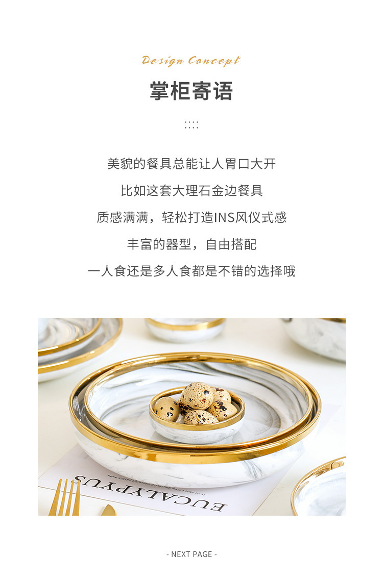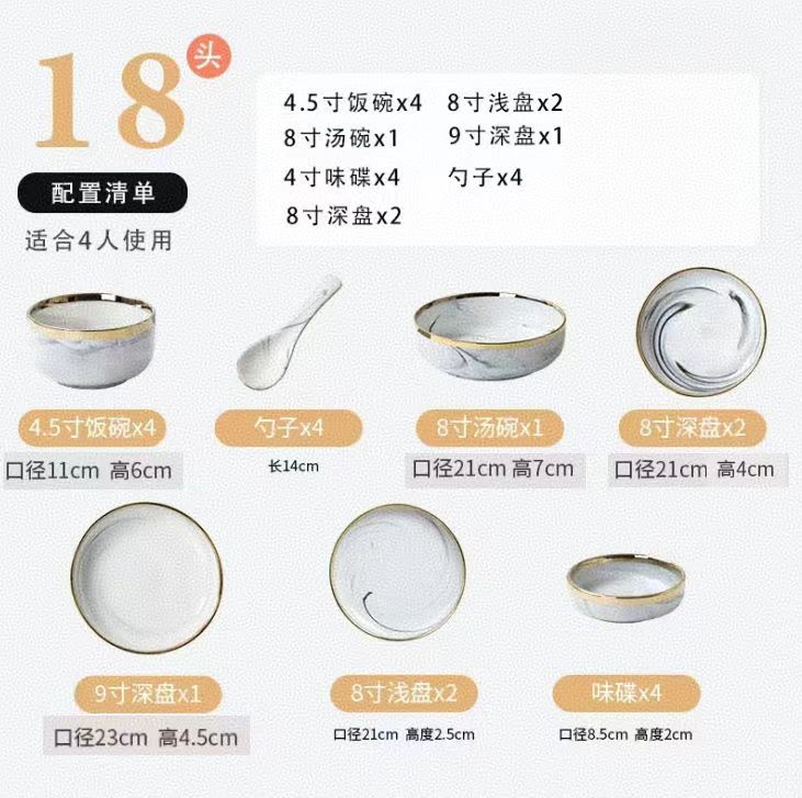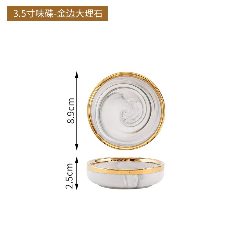 대리석 무늬 금테 도자기 식기 세트 가정용 그릇 접시 수프 그릇 숟가락 도매스토어 가기