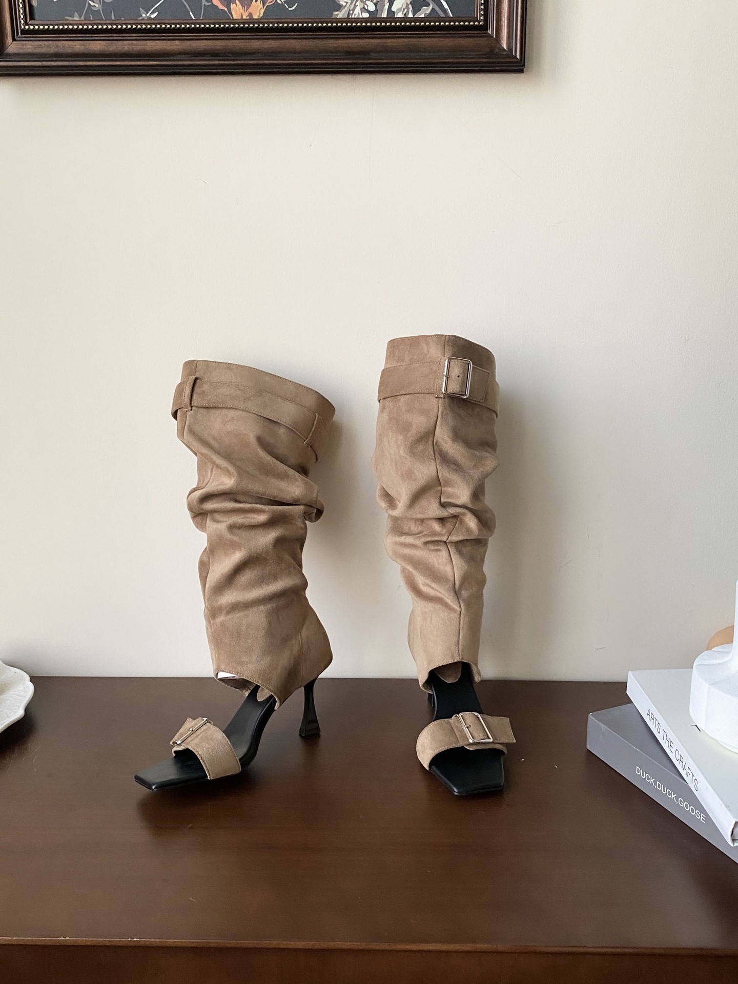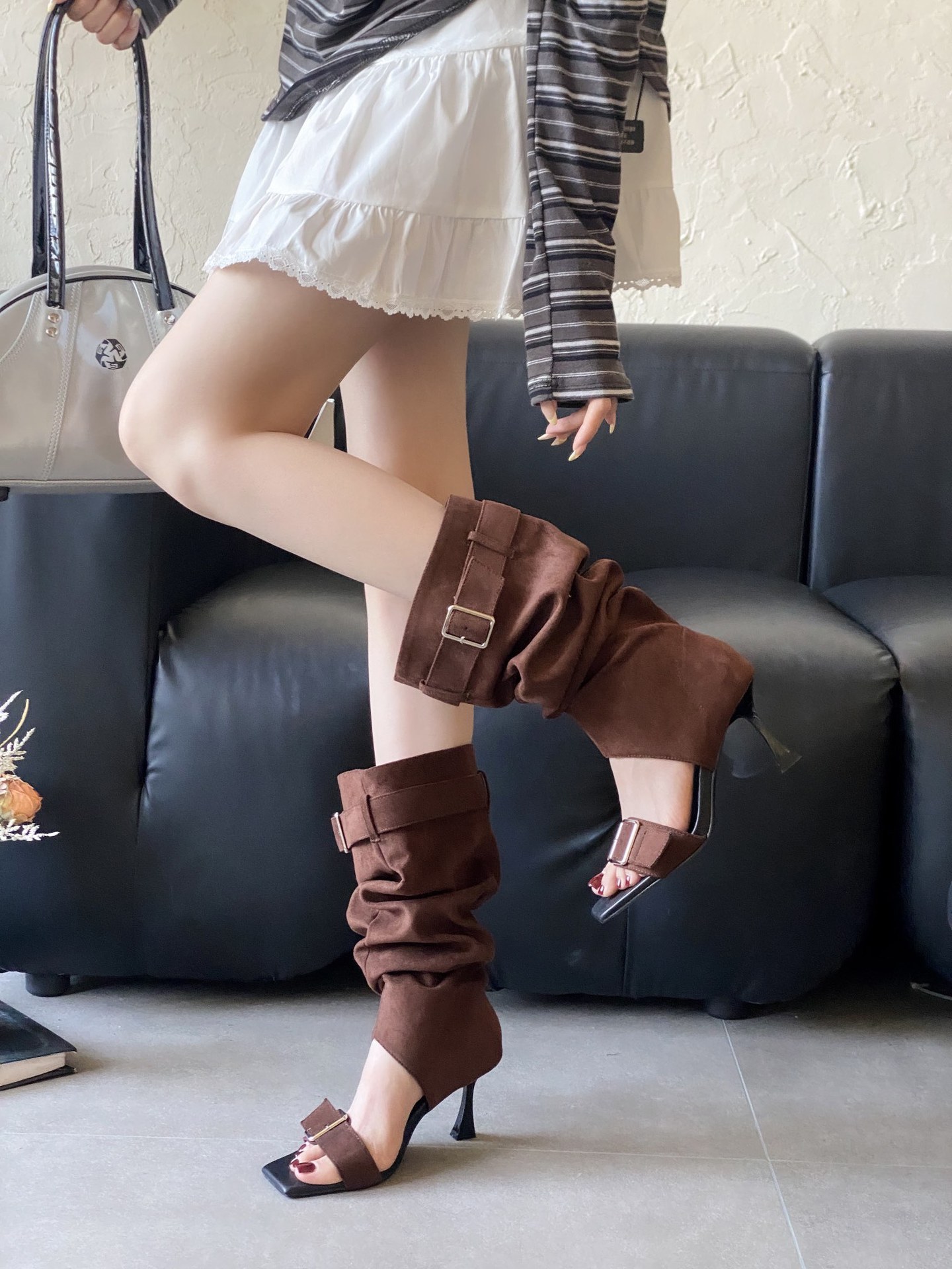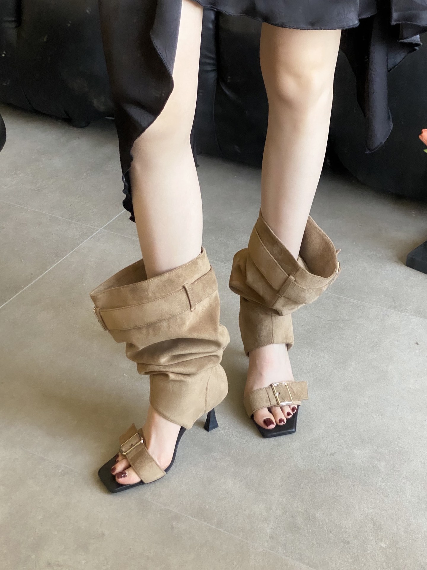 유럽과 미국 스타일의 스퀘어 토 하이힐 스트랩 오픈 워커 샌들