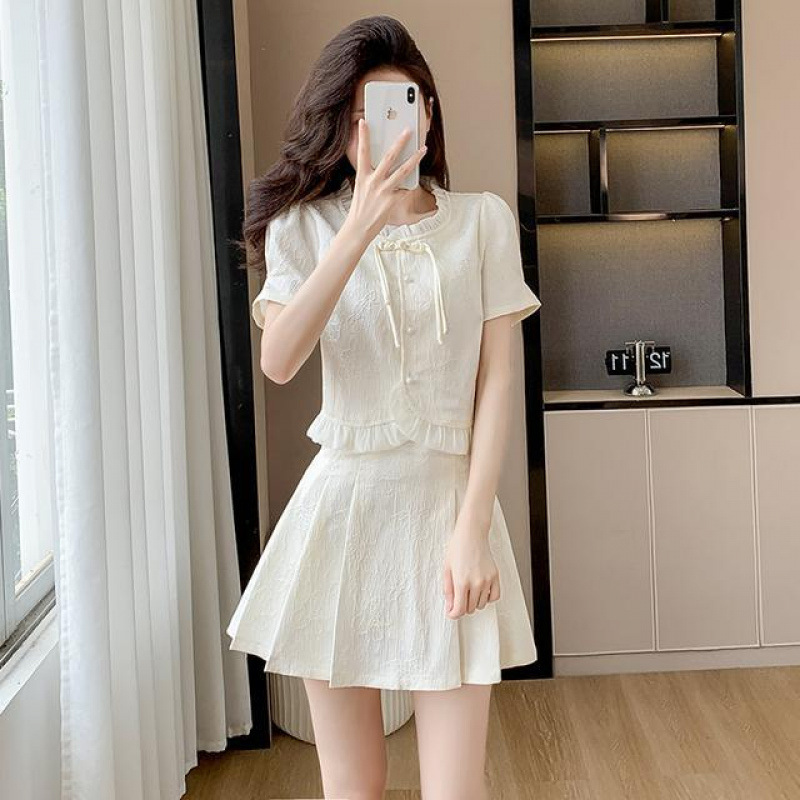 여성을 위한 새로운 중국 스타일의 국풍 정장 스커트, 여름 고급 가벼운 럭셔리 기질 치파오 탑과 플리츠 스커트 투피스 세트