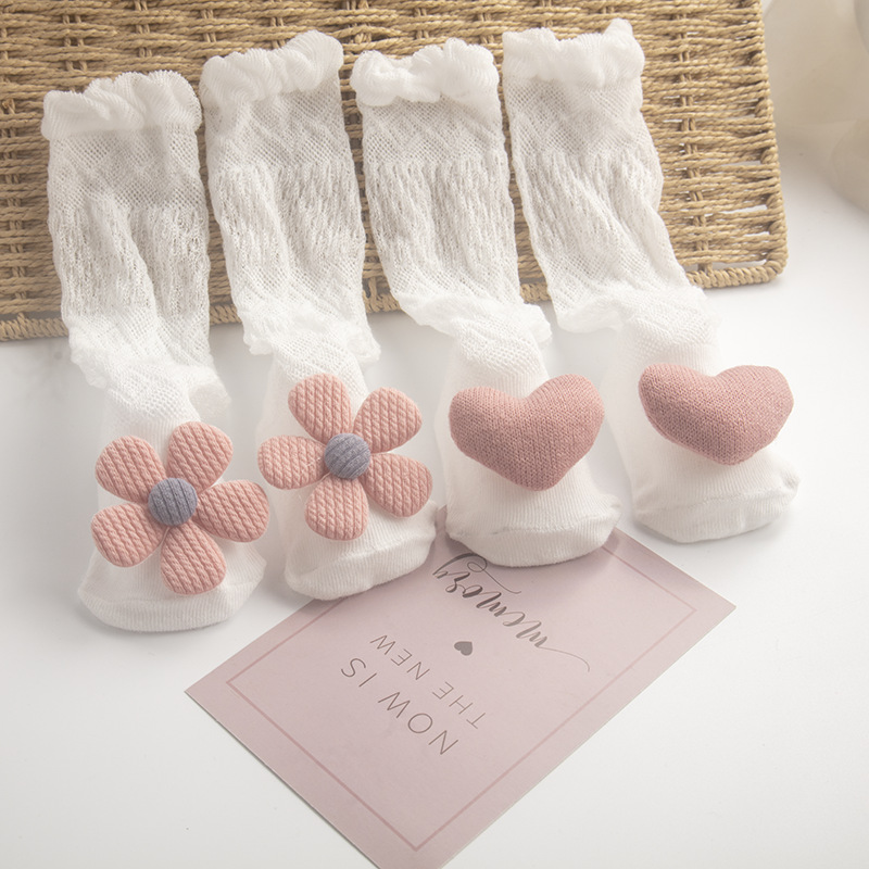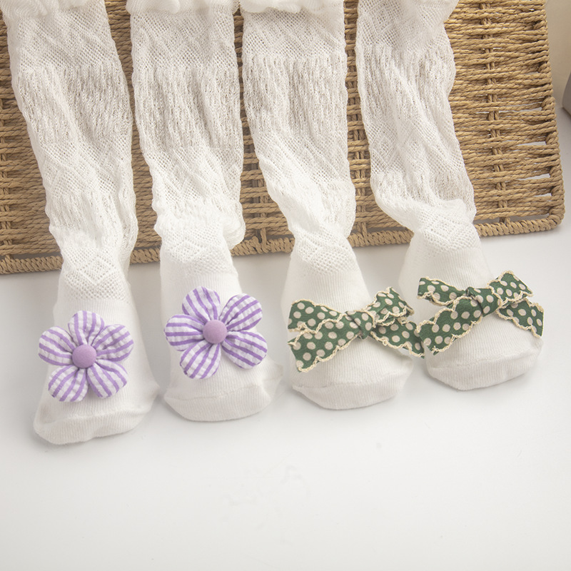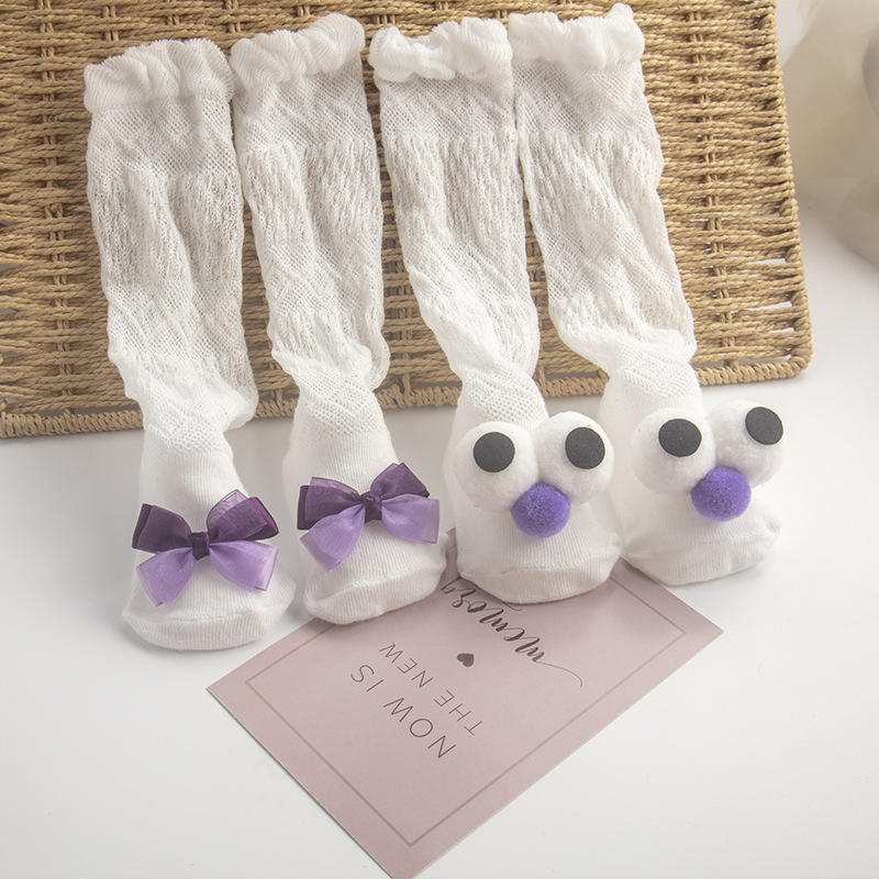 여름용 다리가 길어지는 스타킹, 귀여운 공주님 순면 초박형 양말, 아기 모기 방지 양말, 어린이 양말, 아기 무릎 위 양말
