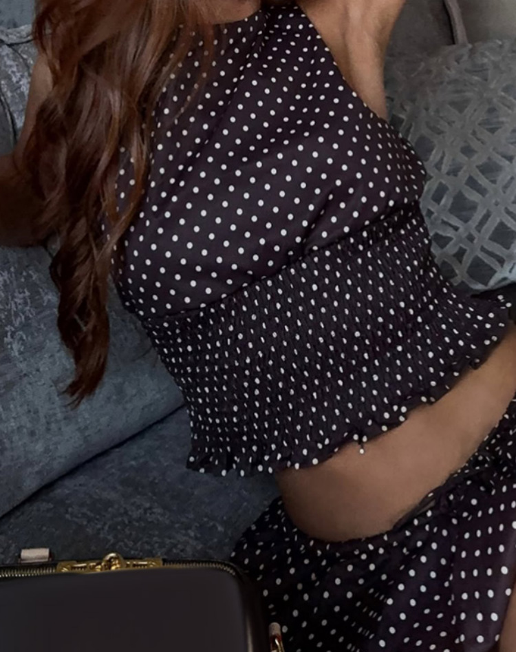 독립 스테이션 크로스보더 2025 유럽과 미국의 새로운 스타일 폴카 도트 레이스 업 민소매 탑 버드 스커트 정장 여성 NTZ6015