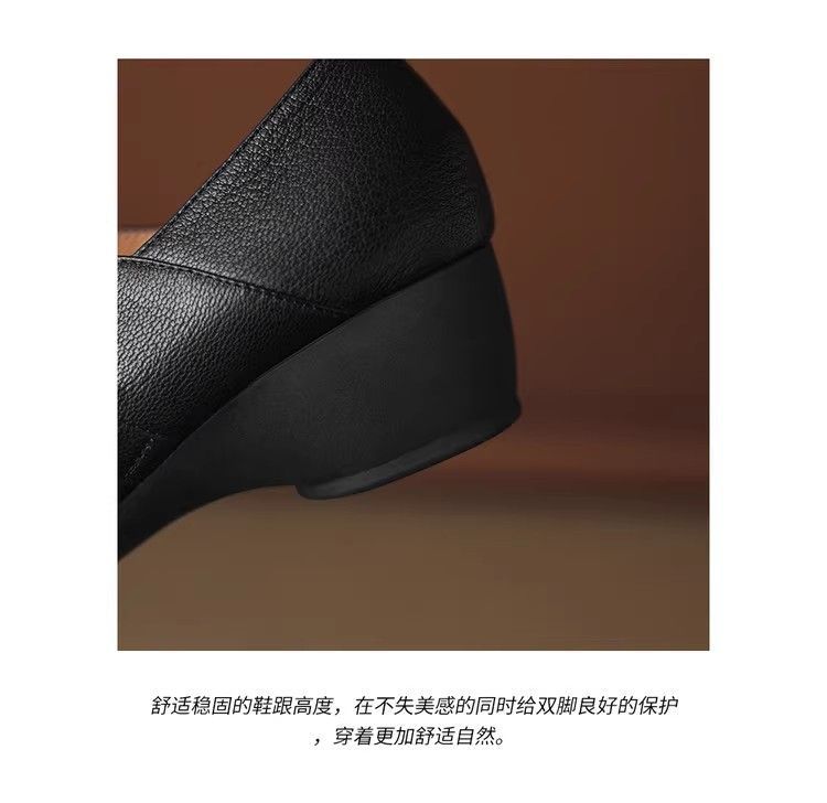 프렌치 다용도 4.5cm 가죽 V 입 웨지 힐 슈즈, 편안한 부드러운 밑창 미드 힐 메리 제인 여성용 작은 가죽 슈즈스토어 가기