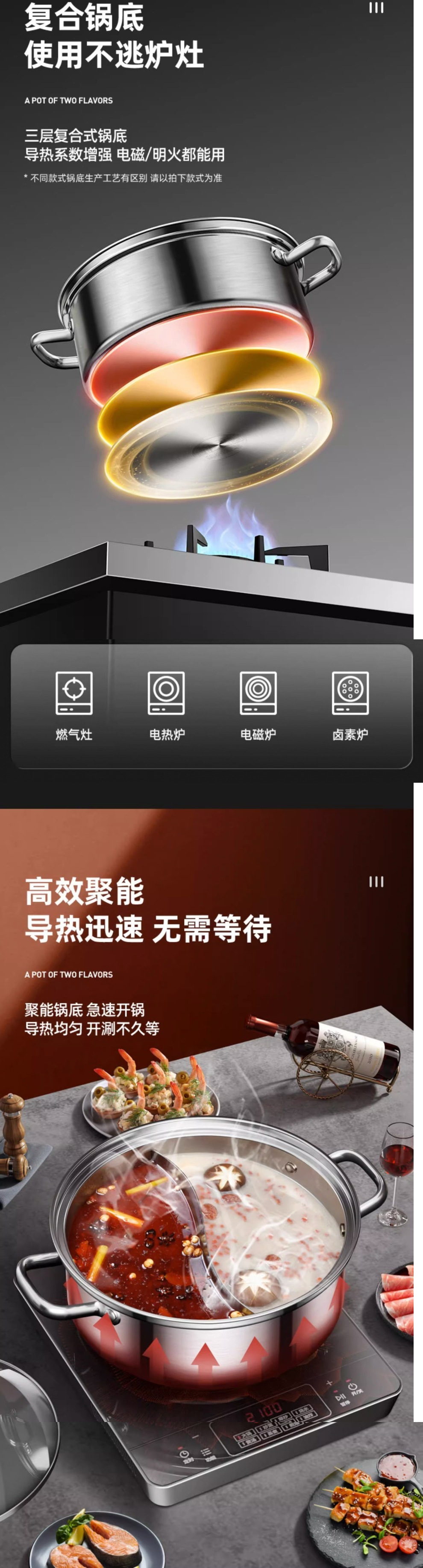 • 304 두꺼운 이중 바닥 원앙 냄비(뚜껑 포함)