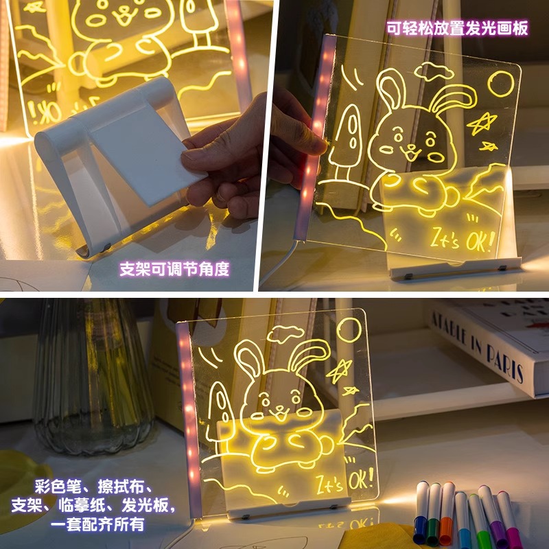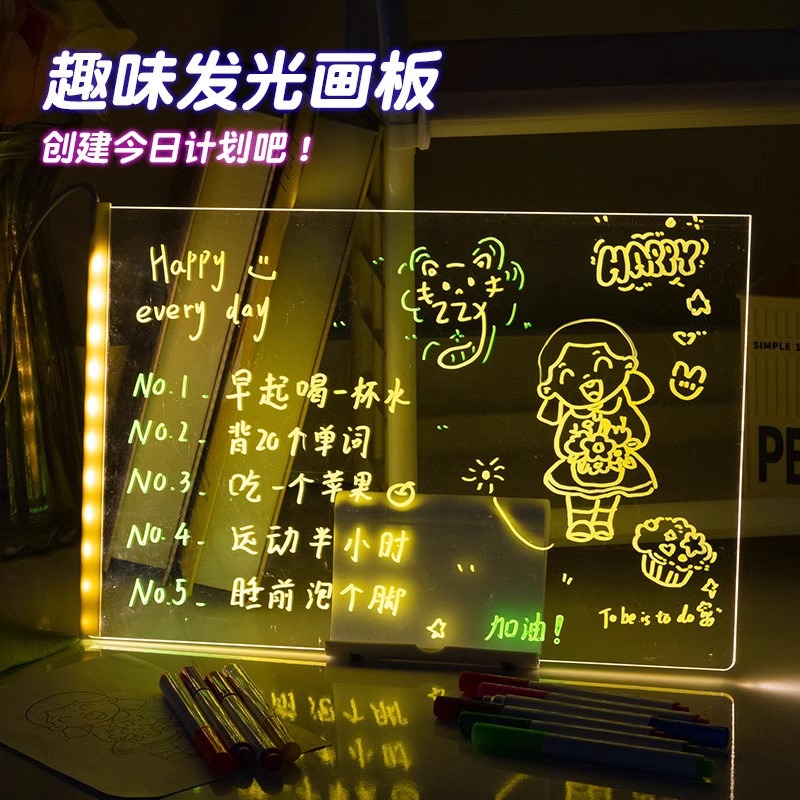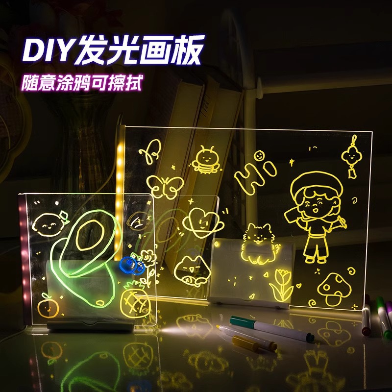 빛나는 그림판 어린이 장난감 양면 아크릴 산리오 DIY 핸드페인팅 그림판 충전식 야광펜스토어 가기