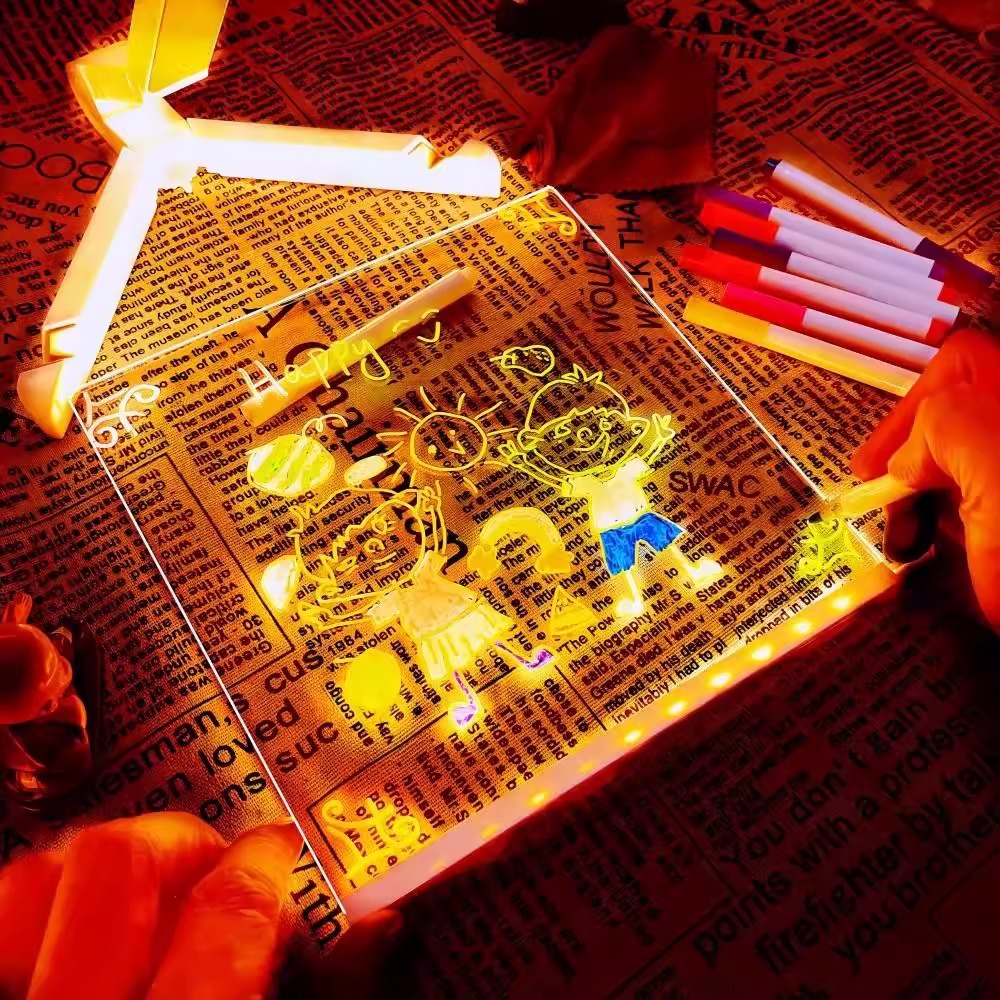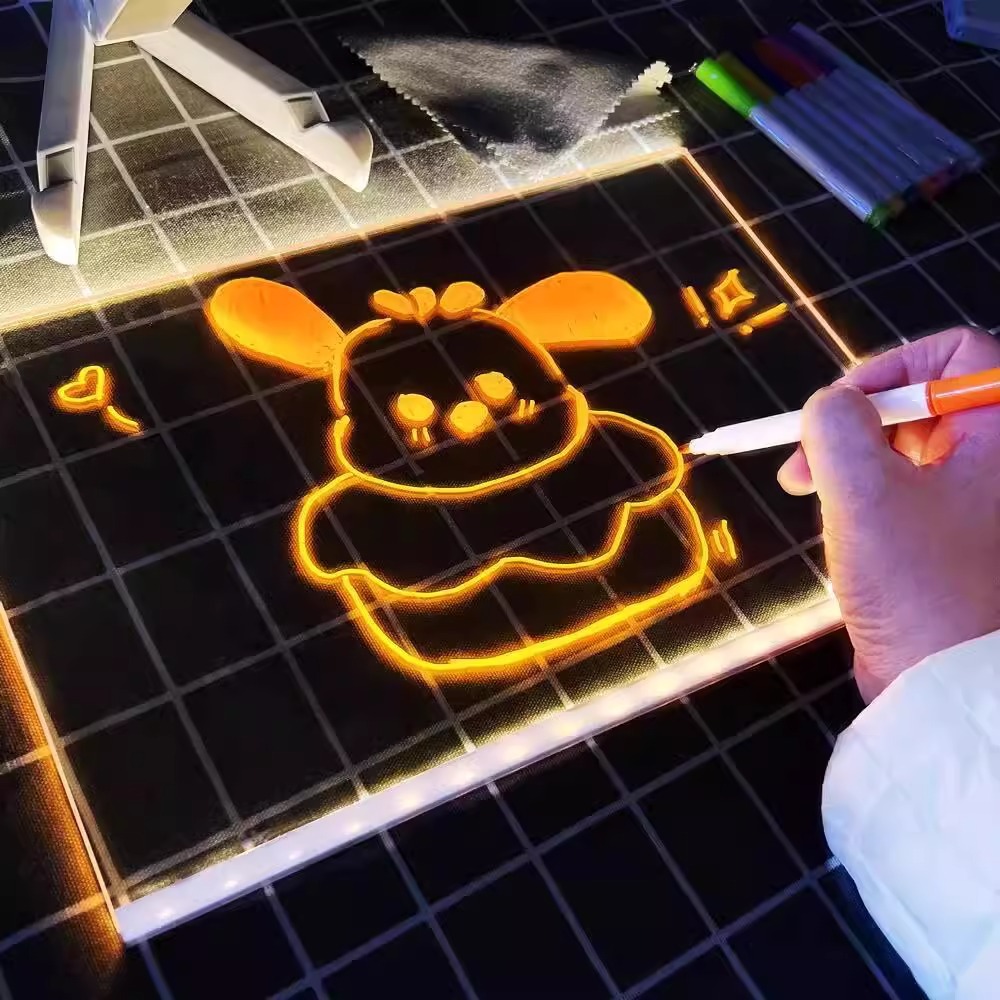 빛나는 그림판 어린이 장난감 양면 아크릴 산리오 DIY 핸드페인팅 그림판 충전식 야광펜