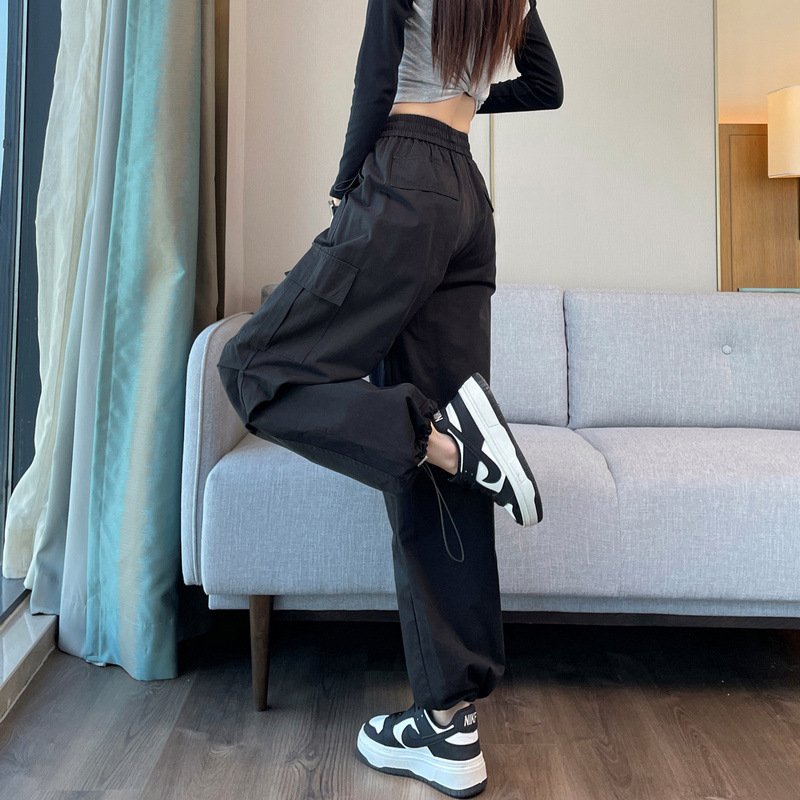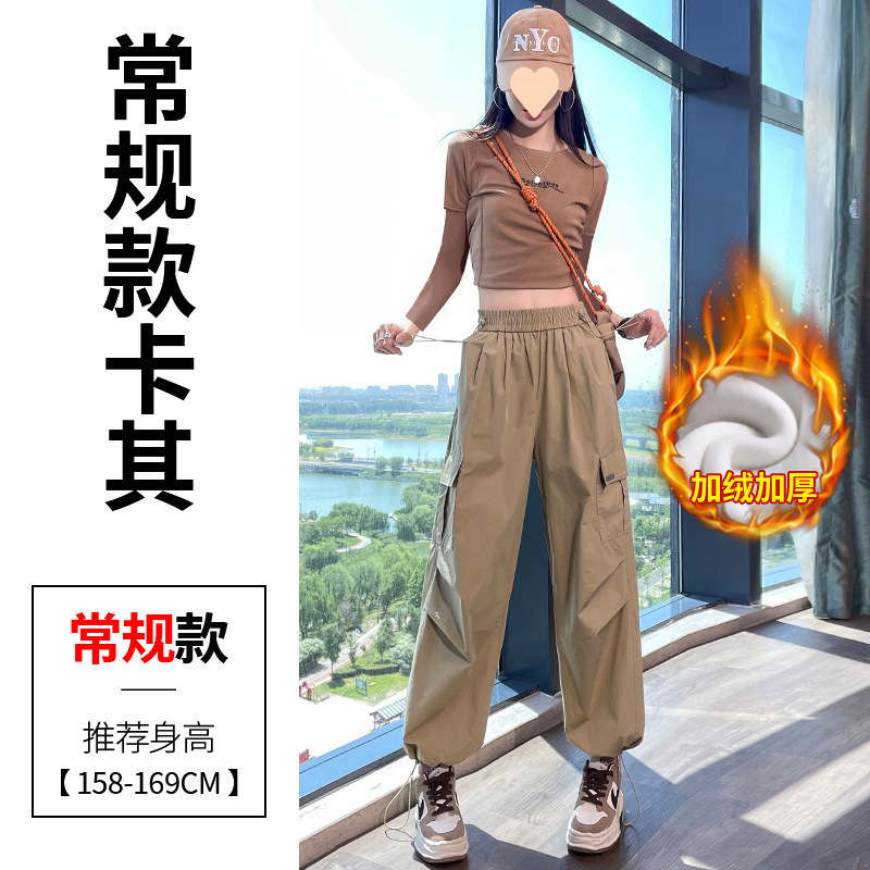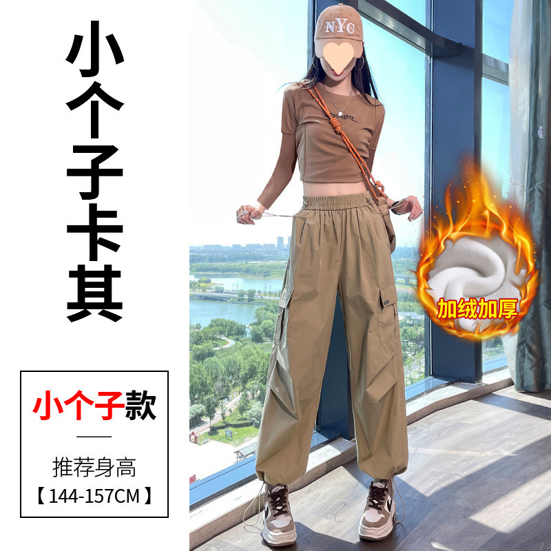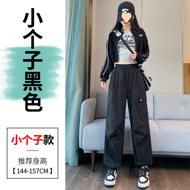 여성용 블랙 오버올, 가을 와이드 레그 낙하산 군인, 작은 사이즈, 루즈한 캐주얼 레깅스, 스트레이트 레그 플러스 벨벳 충전 바지, 겨울