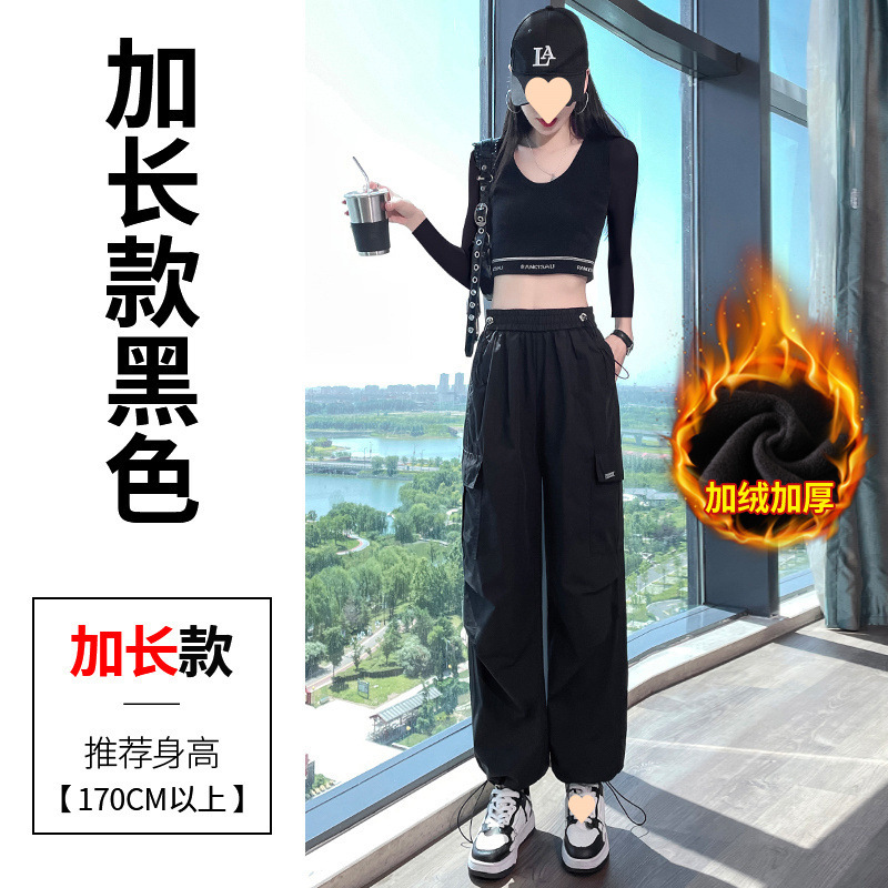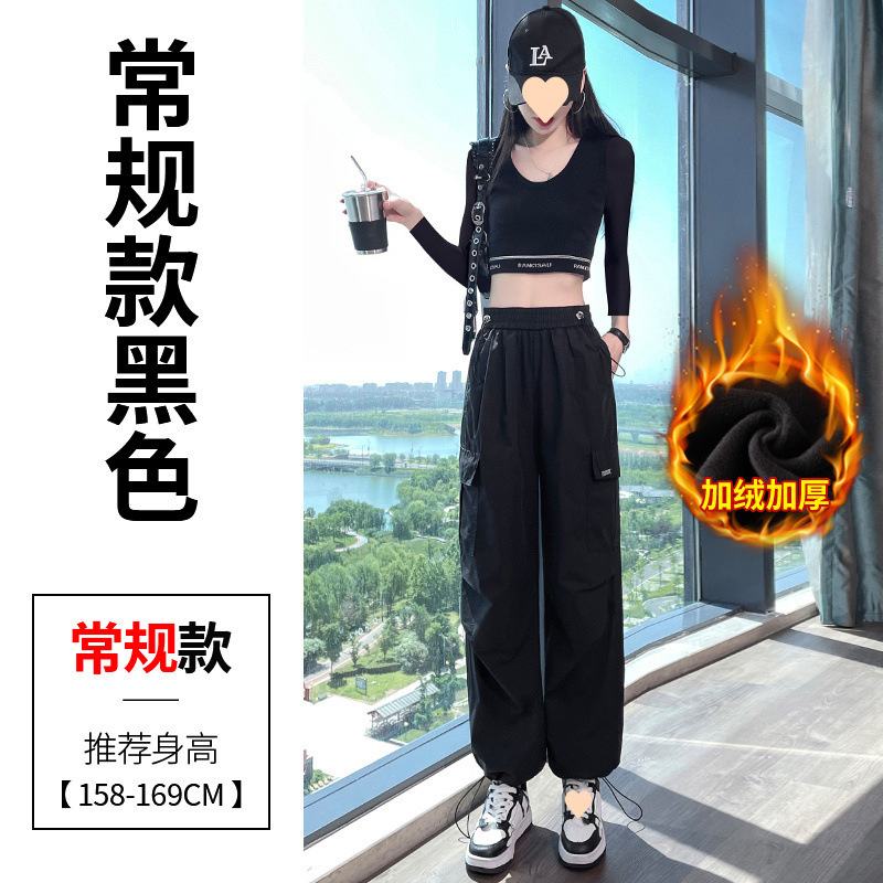 여성용 블랙 오버올, 가을 와이드 레그 낙하산 군인, 작은 사이즈, 루즈한 캐주얼 레깅스, 스트레이트 레그 플러스 벨벳 충전 바지, 겨울스토어 가기
