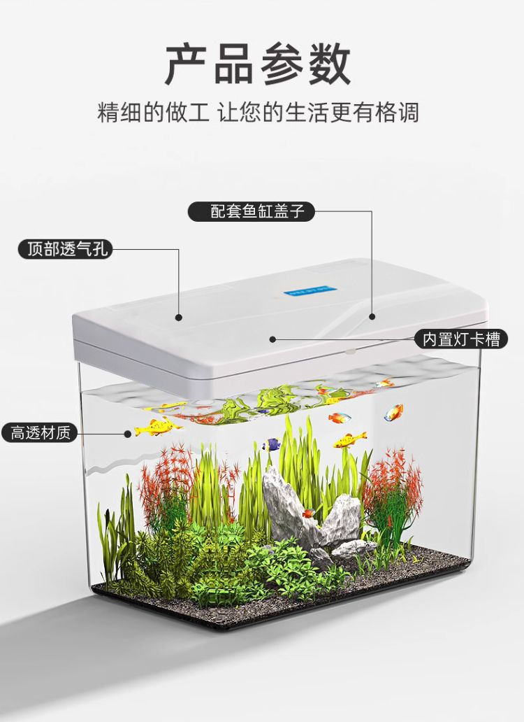뚜껑이 있는 새로운 320 모델 물고기 탱크, 생태학적 가정용 데스크탑 금붕어 탱크, 사무실 거실 물고기 탱크를 공장에서 직접 공급합니다.스토어 가기