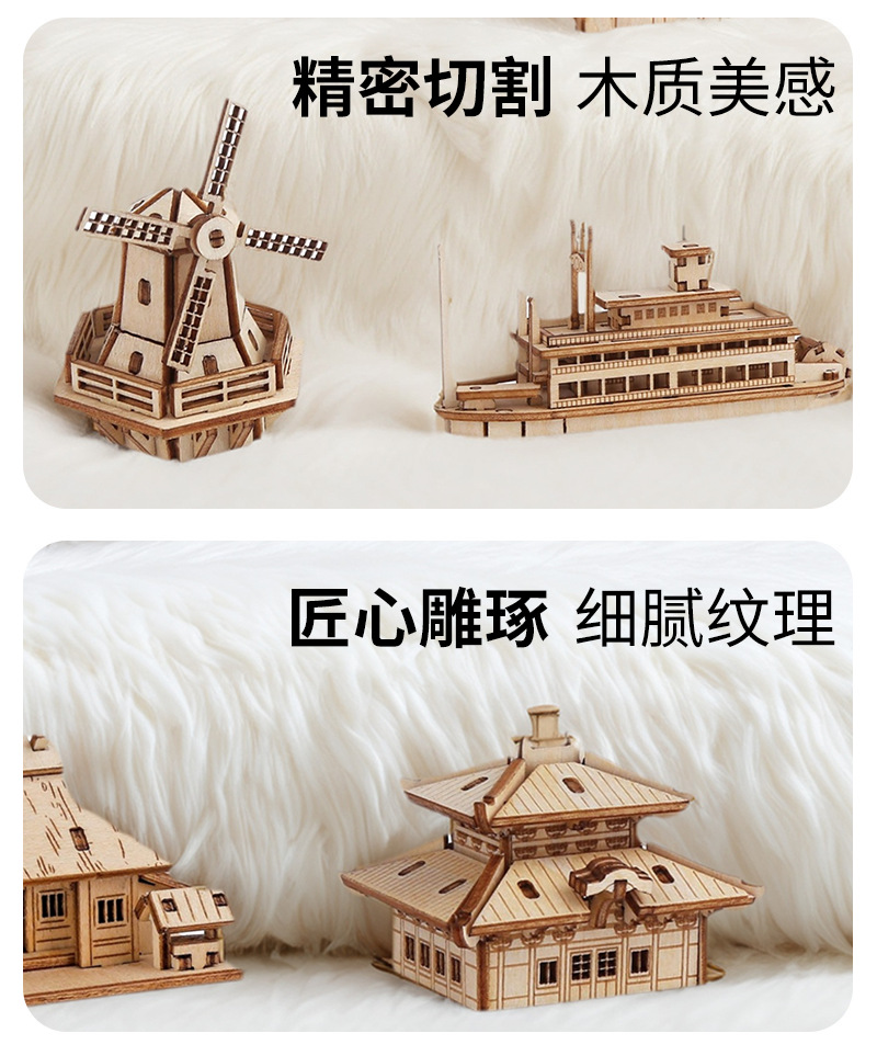 미니 조립 모델 새로운 장난감 나무 퍼즐 세트 고대 건물 크루즈 선박 크리 에이 티브 수제 줄기스토어 가기